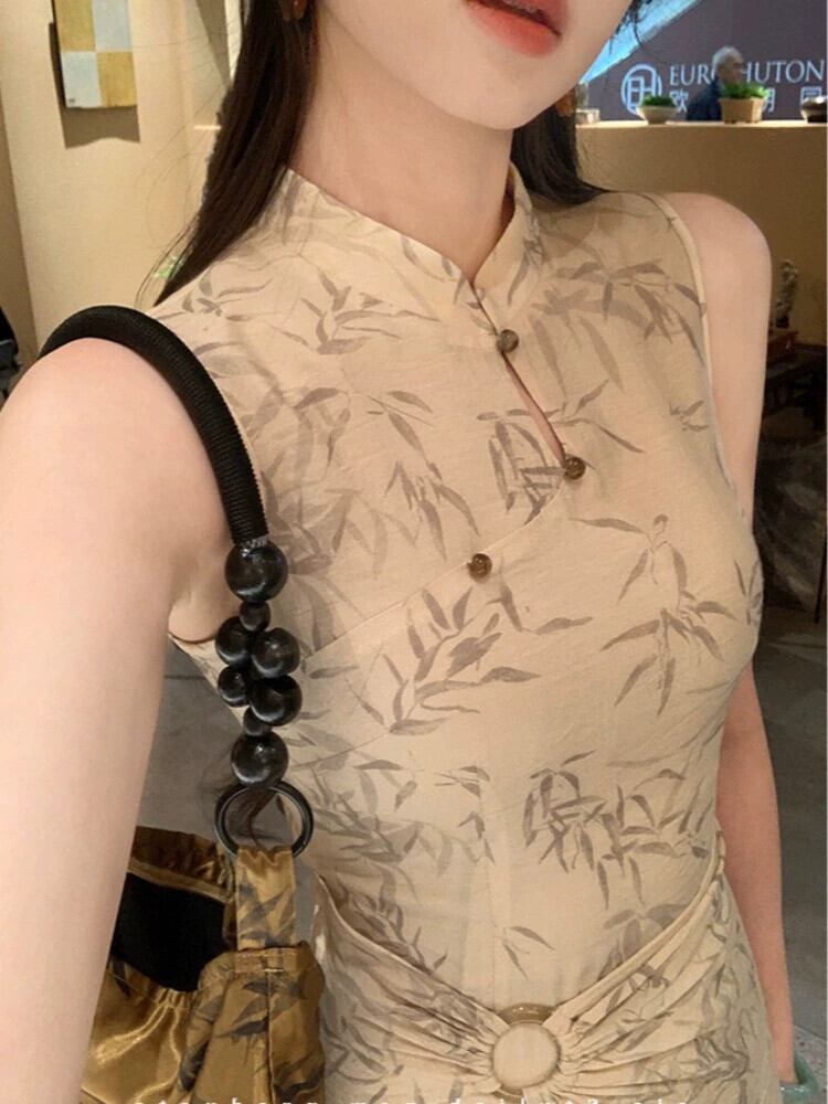 中国風改良チャイナドレススカート女性の2024年春の新作長袖カーディガン気質プリントドレス2点セット ロング スプリング 春物 yingd71576048457