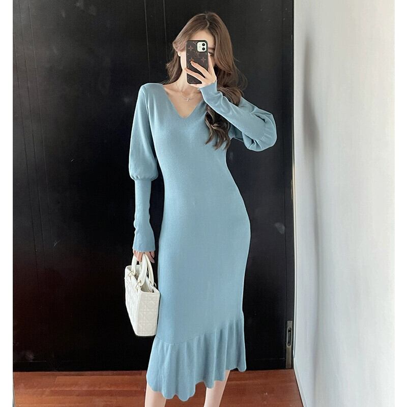 秋と冬のスタイルのコート付きセータースカートルーズレイジースタイルハイエンドインナーボトニングニットフィッシュテールドレス女性 オータム 秋物 ウィンター 冬物 yingd94648061146