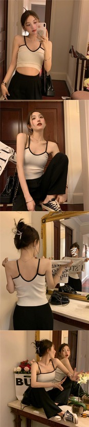 ニッチなデザインのアメリカンシックな甘辛キャミソールトップス、ノースリーブベストのボトリングシャツを合わせたスリムでセクシーなショートスタイル 大人ガーリー スウィート キュート カジュアル yingd2073412389