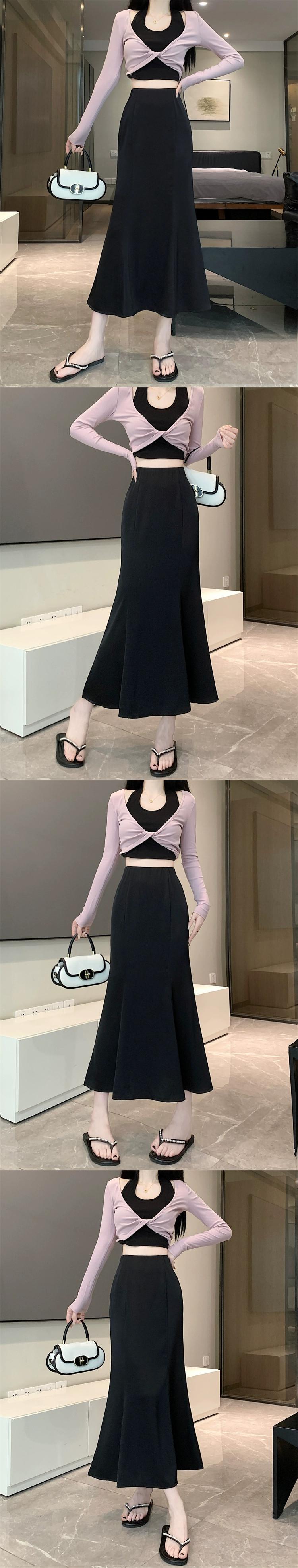 2024春の新作ハイウエスト、スリム、多用途、スリムフィットお尻カバーフィッシュテールスカートレディース、ハイエンドで超見栄えの良いスカート スプリング 春物 yingd58216367392