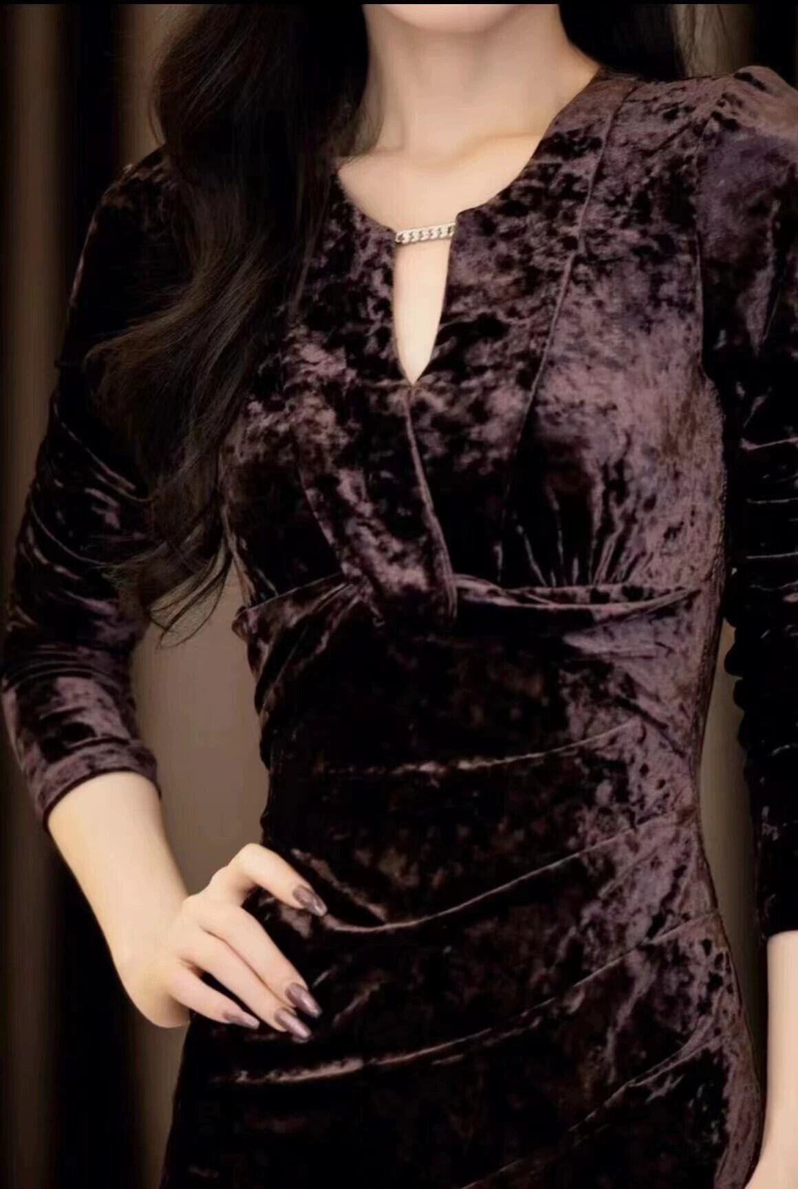 フレンチスタイルのスリムフィットヒップハグロングスカート、黄金感のあるとても素敵な高級ベルベットドレス、秋冬スタイルの女性 オータム 秋物 ウィンター 冬物 yingd18081874260
