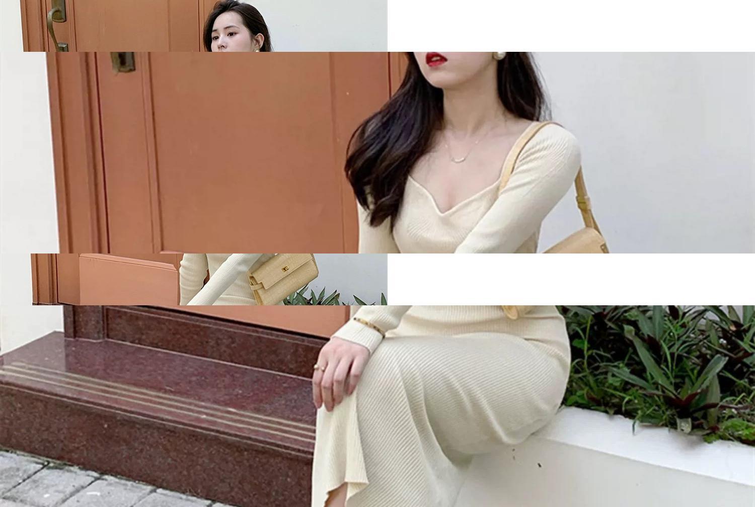 2024新しい秋の服、気質、女神スタイル、ハイエンド、スリム、黒の長袖ニットドレス、ロングスカートの女性 ブラック オータム 秋物 yingd68810357039