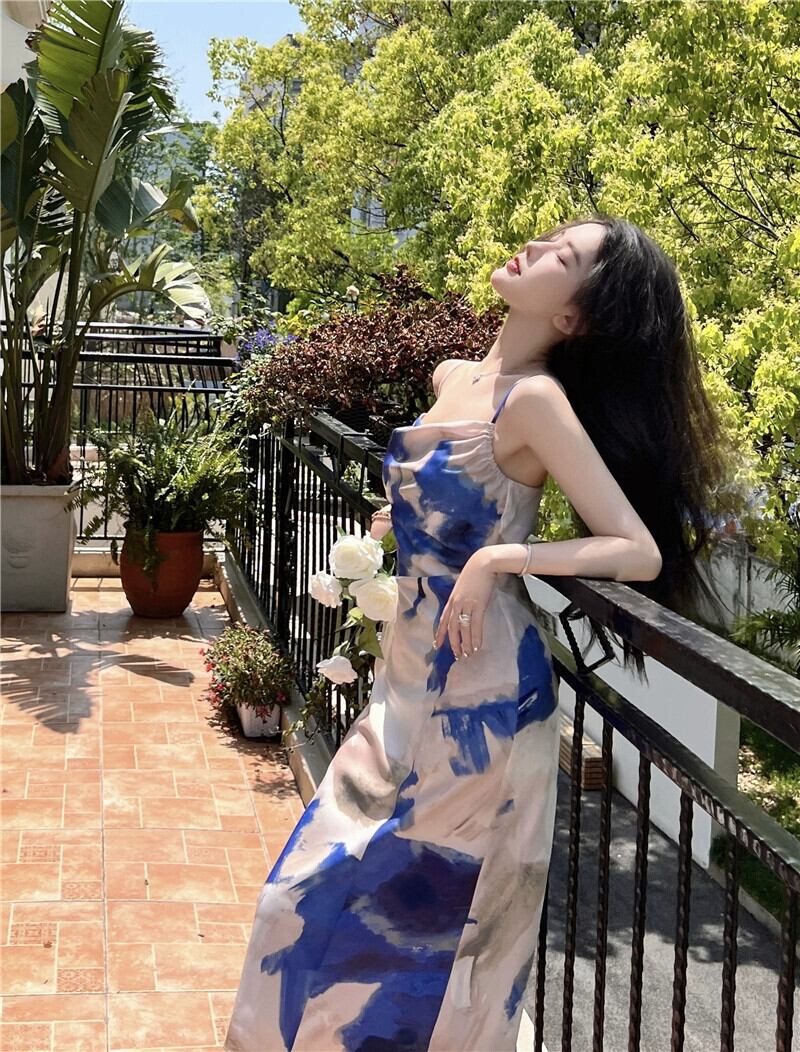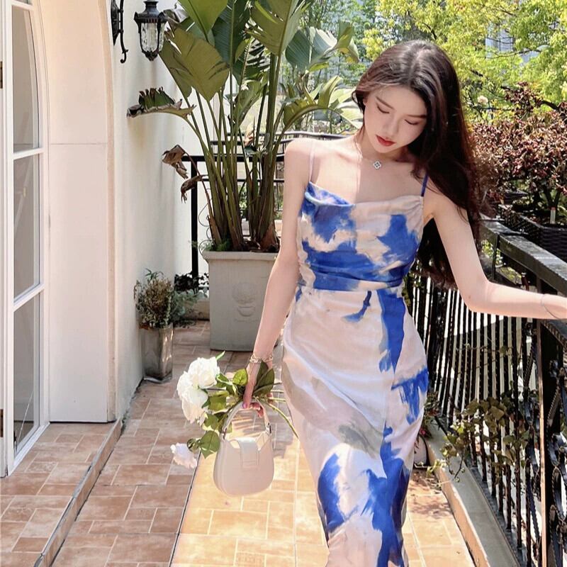 フランスの純粋な欲望スタイルのプリントサスペンダースカート、ウエスト痩身、エレガントでハイエンドのロイヤルシスターサスペンダードレス2024新しいスタイル ピュア yingd48759663026
