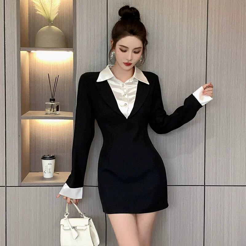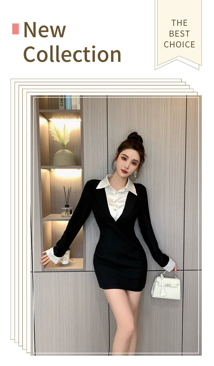春の女性の 2024 新作シックでユニークなスカート Yujie 軽い大人のスタイルのデザインスプライシングフェイクツーピースドレス スプリング 春物 yingd26531182748
