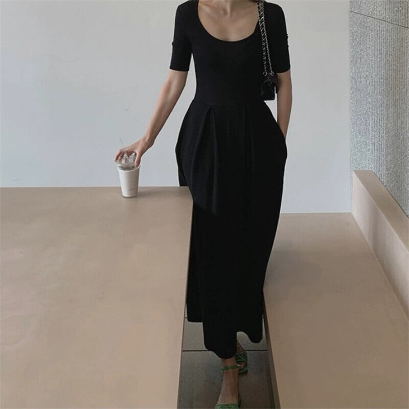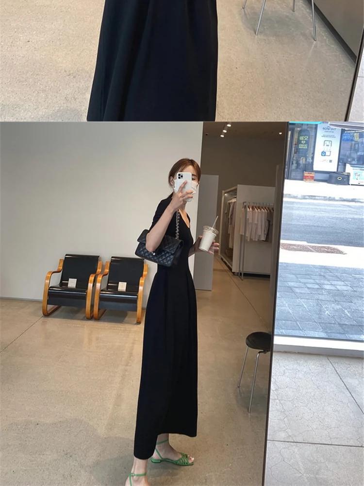 フランスのレトロなヘップバーンスタイルの黒のロングスカート、ウエストを細くし、エレガントでハイエンドのロイヤルシスタードレス2024新しいスタイルの女性 ブラック yingd89295252154