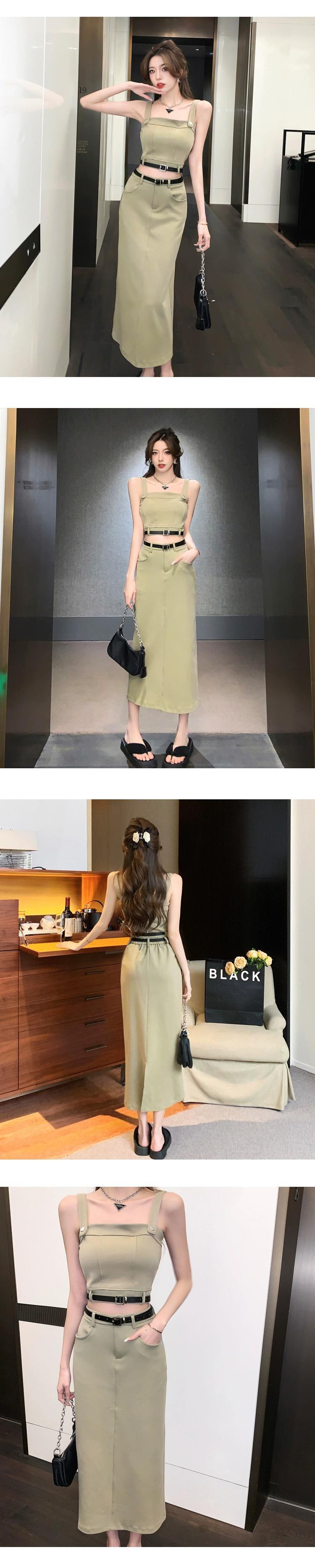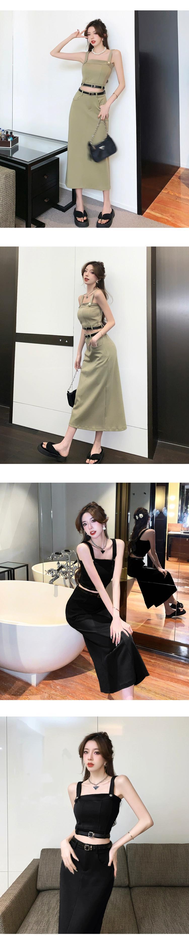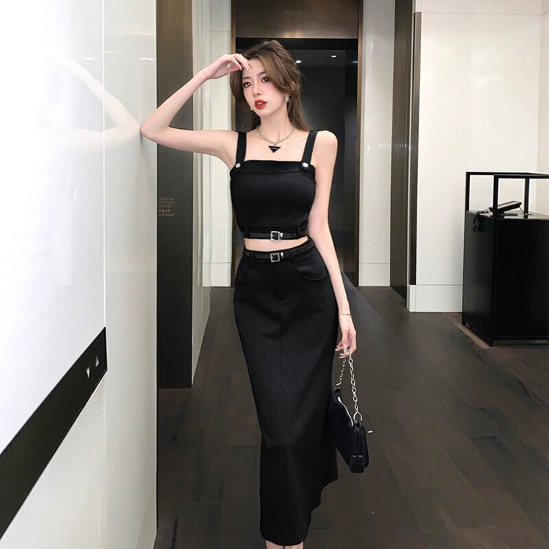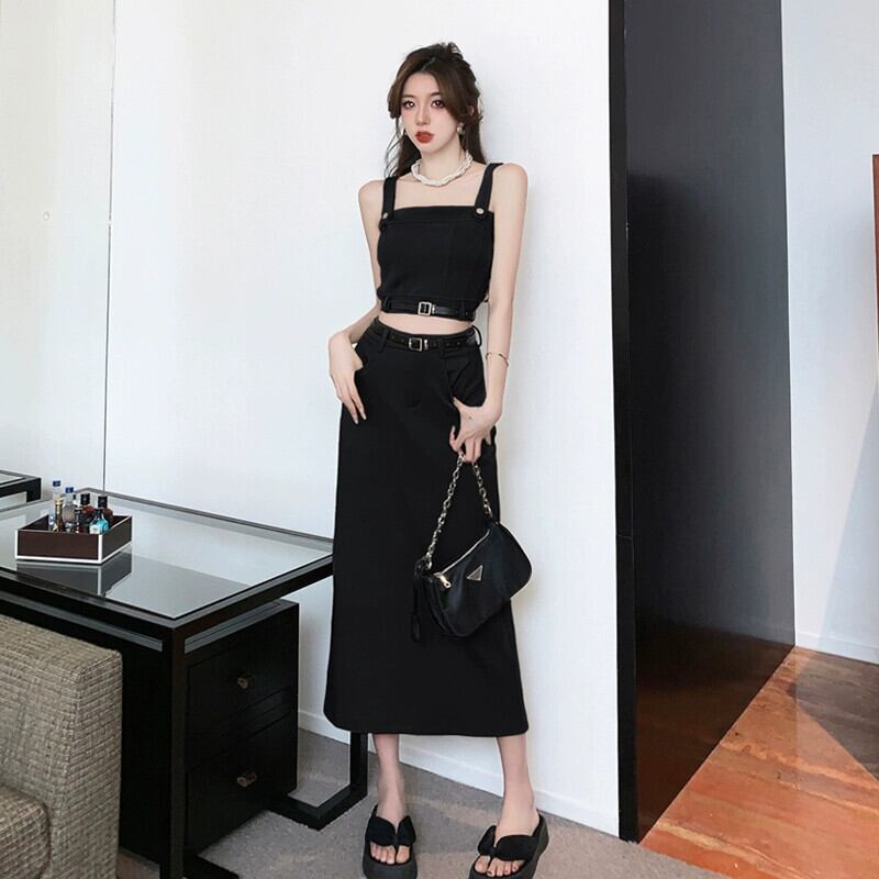 気質の女性のハイエンド香港スタイルのネットセレブの甘くてクールな衣装爆撃ストリートショートサスペンダートップスとスカートの2点セット 大人ガーリー スウィート キュート カジュアル yingd41257880852