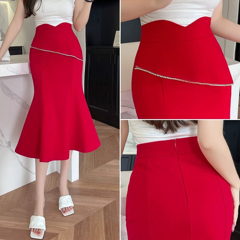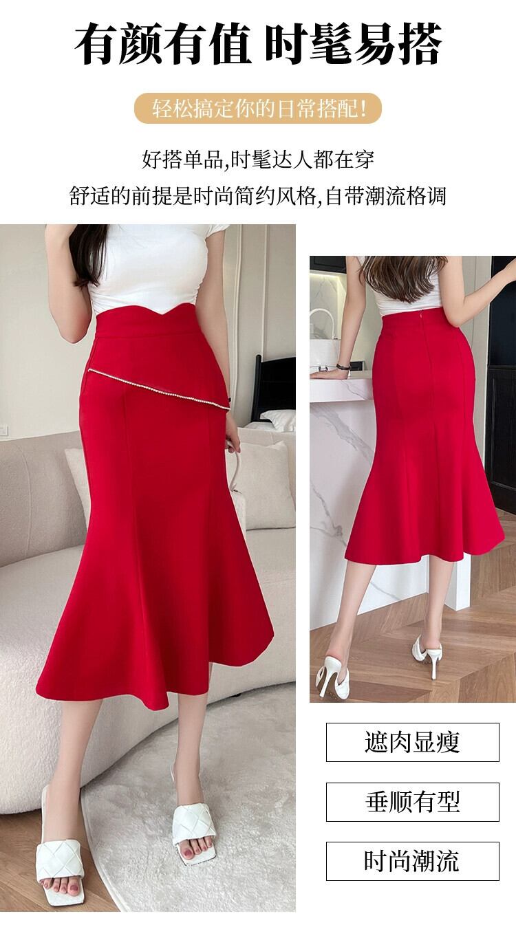 夏服2024新作モデルYujie軽くて大人っぽいハイウエストスリムフィットヒップハグフィッシュテールハーフレングススカートニッチデザイン サマー 夏物 yingd14891239091