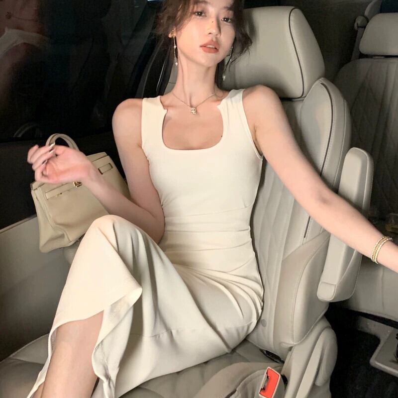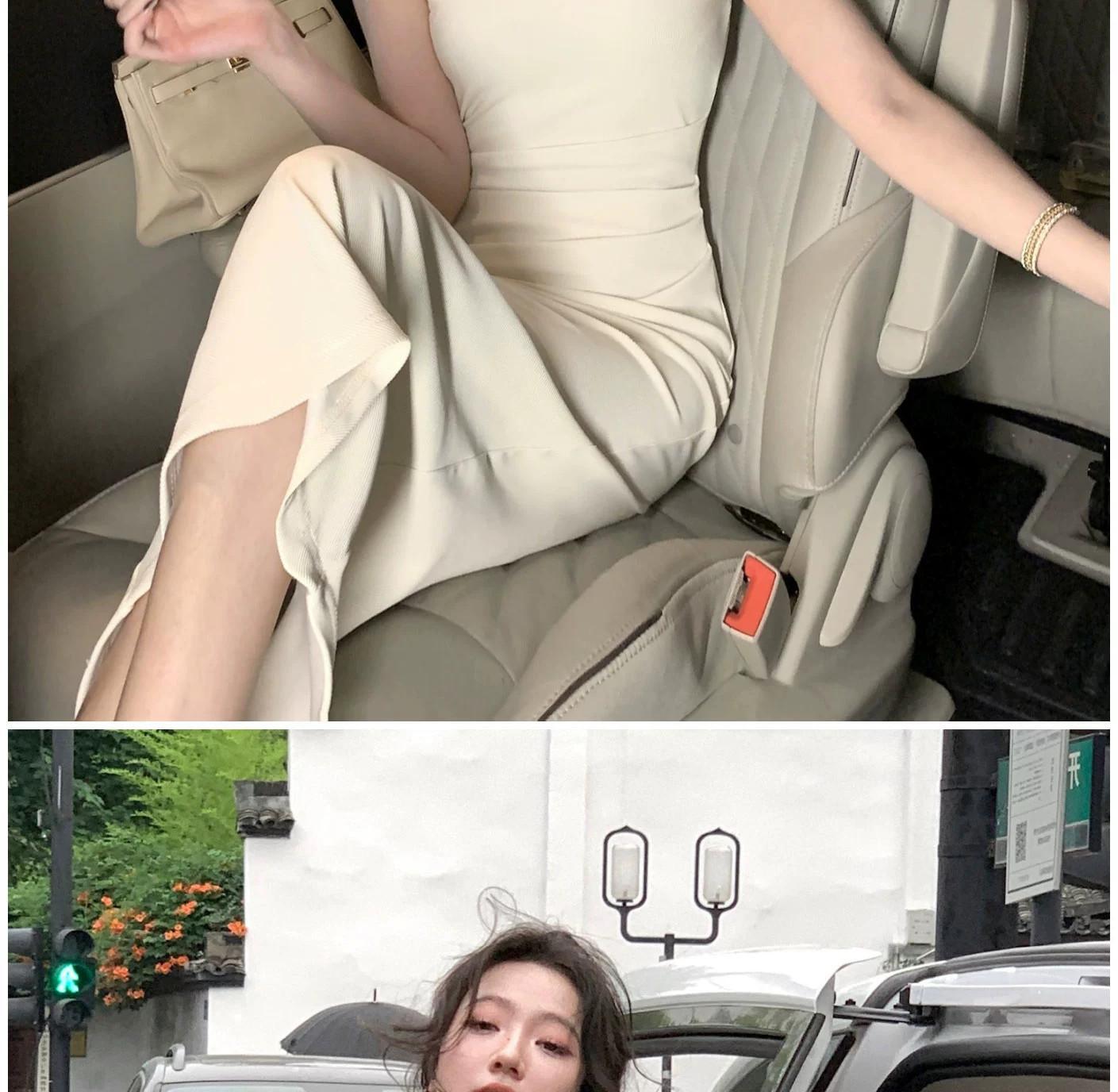 Yujie ライト大人スタイルのウエストを締めるプリーツお尻をカバーするスカートニットサスペンダーハイエンドライト高級ドレス 2024 新しい女性の夏 サマー 夏物 yingd54679388571