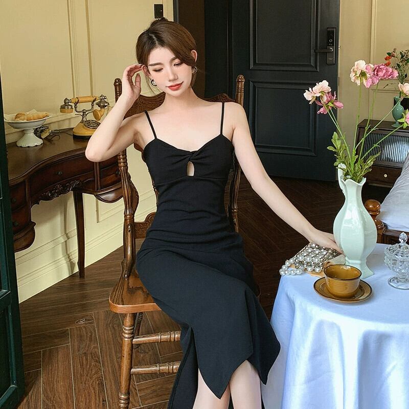シックでユニークなデザイン、控えめでクール、ロイヤルシスタースタイルのセクシーな黒のサスペンダードレス2024レディース新作夏 ブラック サマー 夏物 yingd61128455916