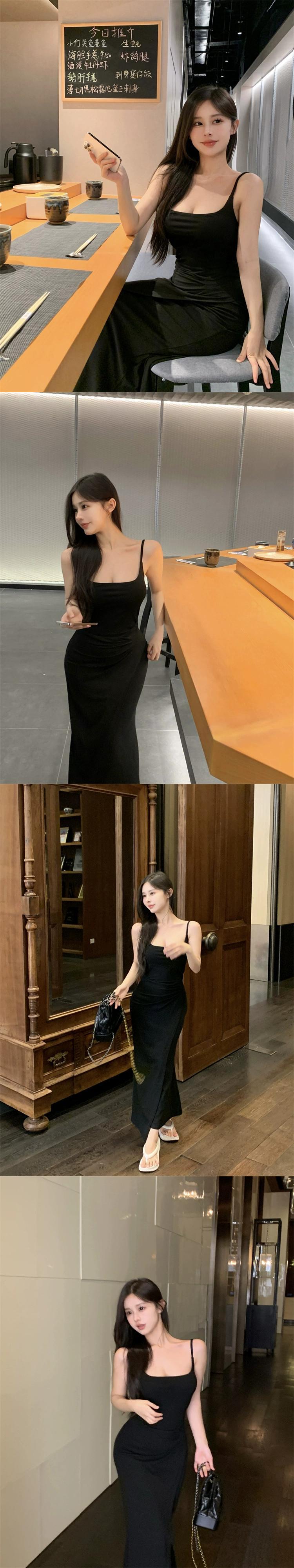 夏のドーパミンロングスカートの女性 2024 夏の新モデル Yujie 軽くて成熟したスタイルのドレープの図を示すサスペンダードレス サマー 夏物 yingd1710683004