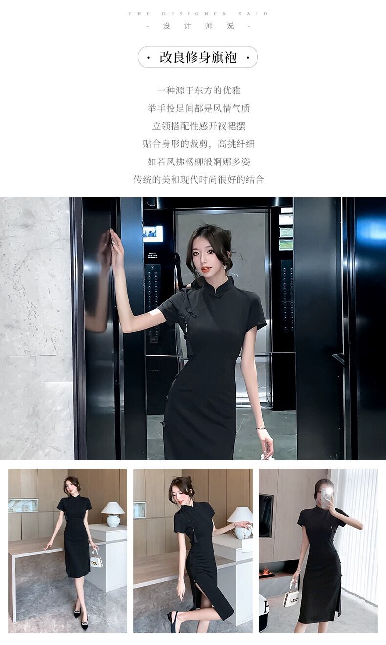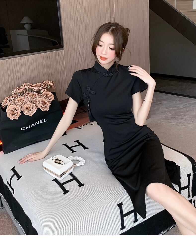 中国風レトロ改良チャイナドレス若いスタイルハイエンド気質セレブヒップカバードレスYujieライト成熟したスタイル yingd7654805044