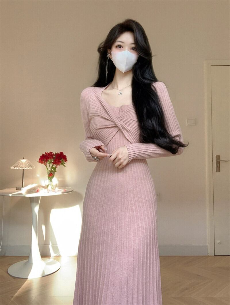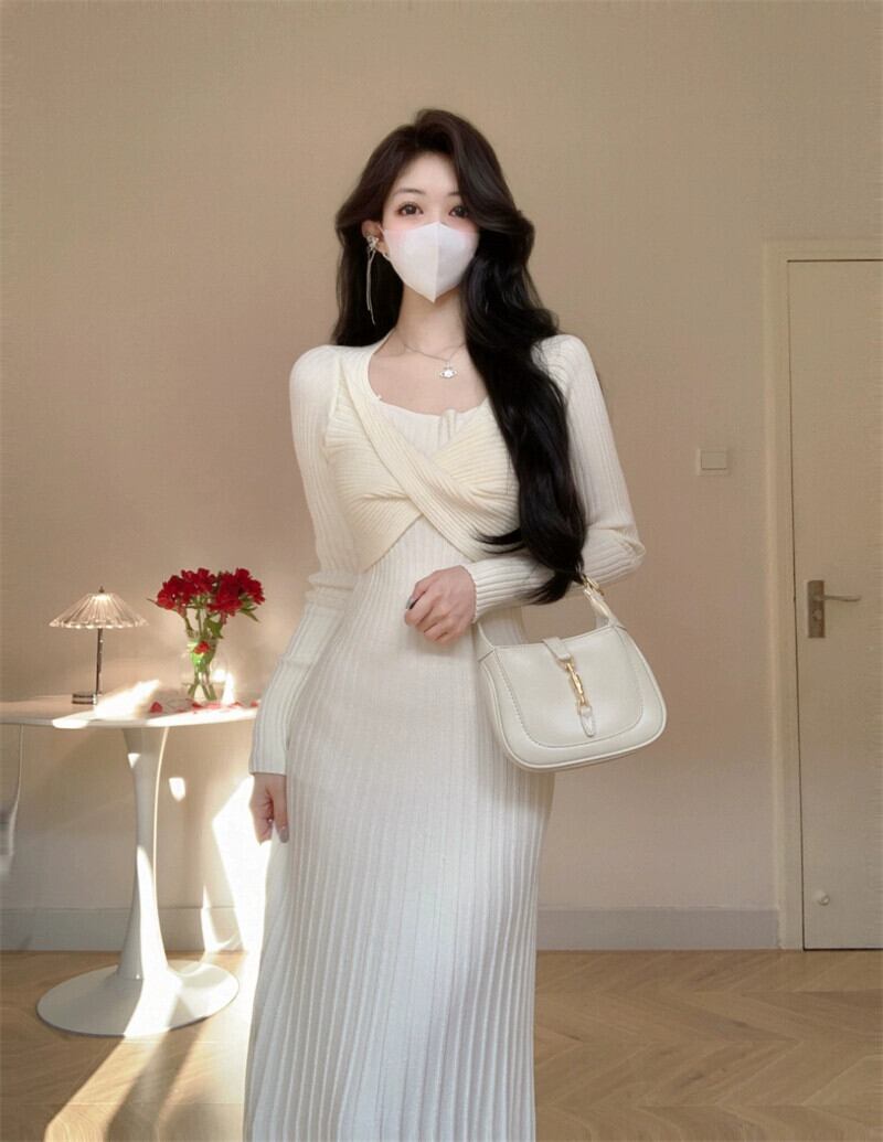 シックでユニークなデザイン、美しいねじれた小さなスカート、高度なスリムフィット、セクシーなヒップカバーニットドレスレディース yingd25018005621
