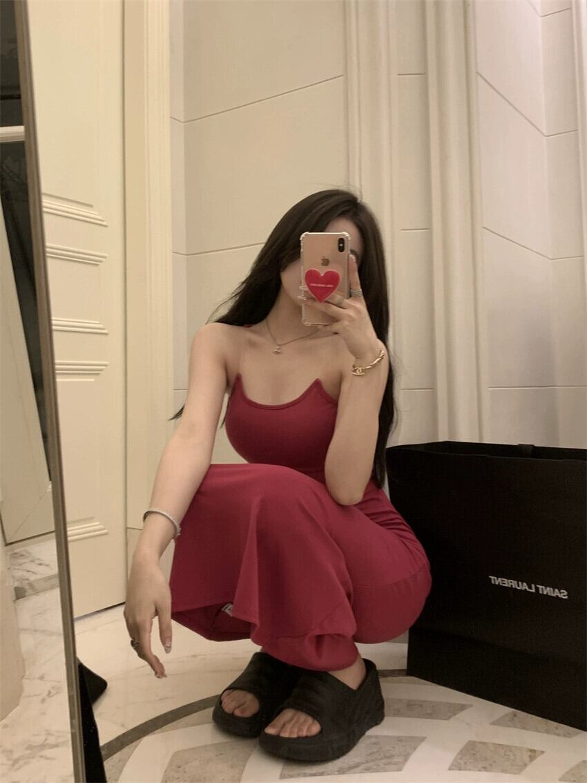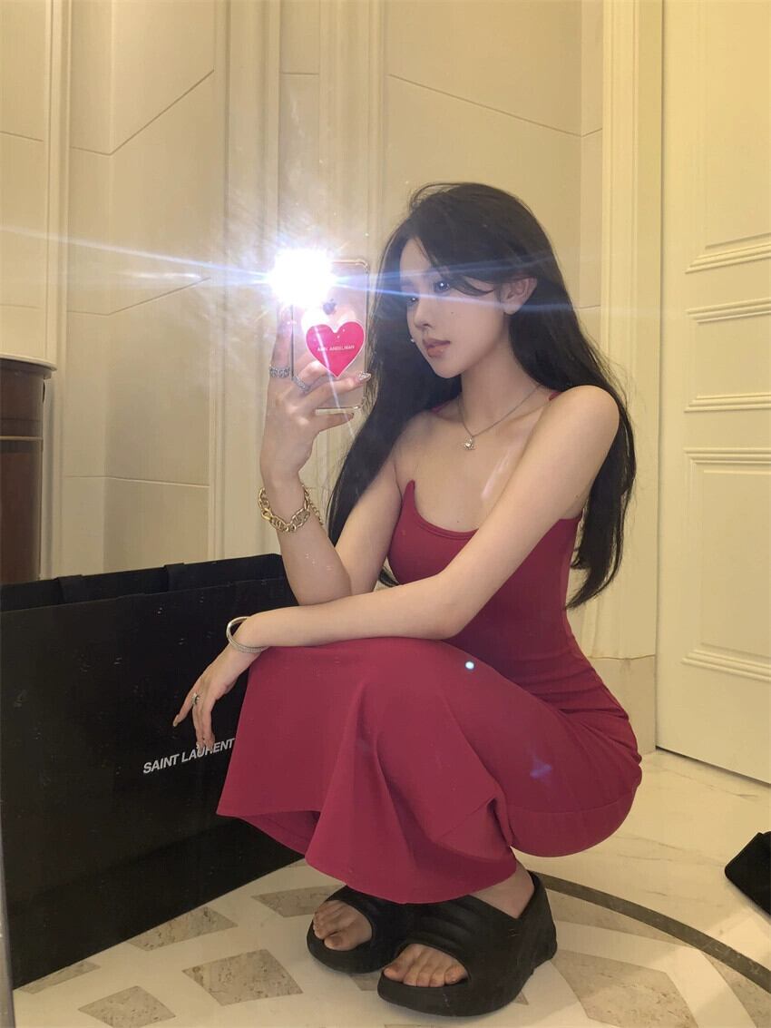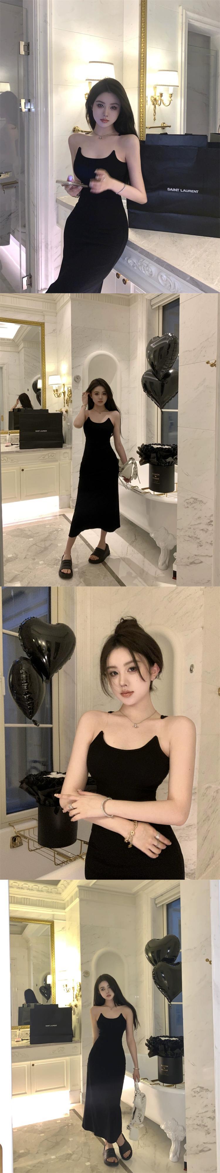 見えない肩ストラップ、サスペンダー付きのロングスカート、上質な質感、スリムなウエストとエレガントな気質、純粋な欲望スタイルのドレスセレブと ピュア yingd87877023970