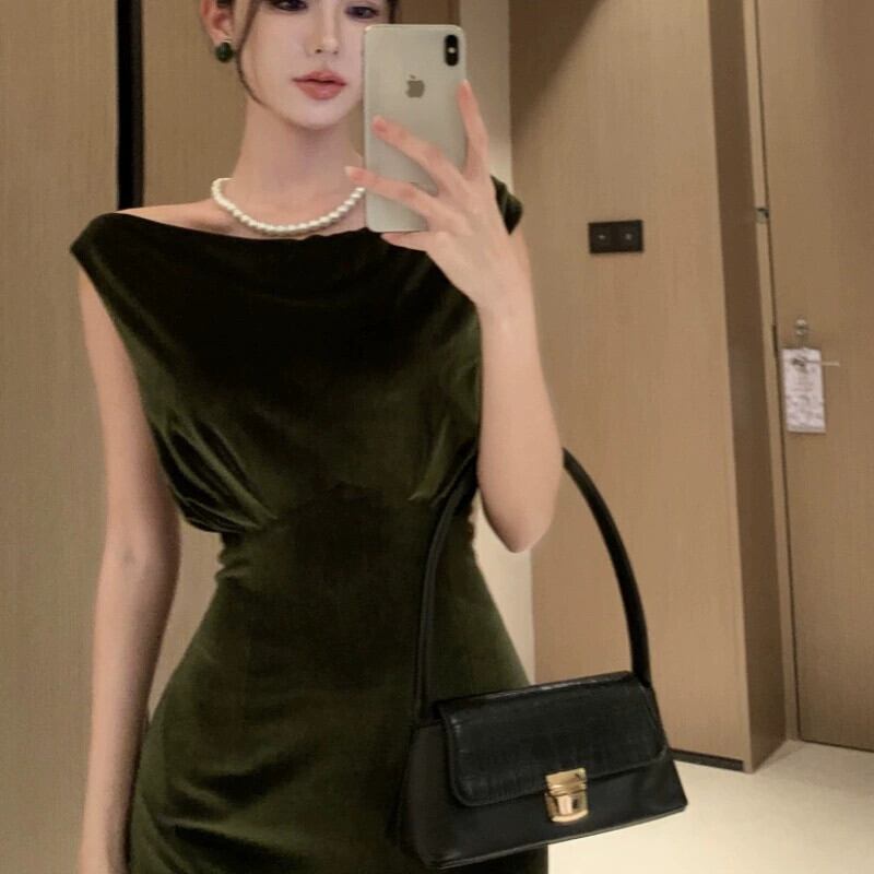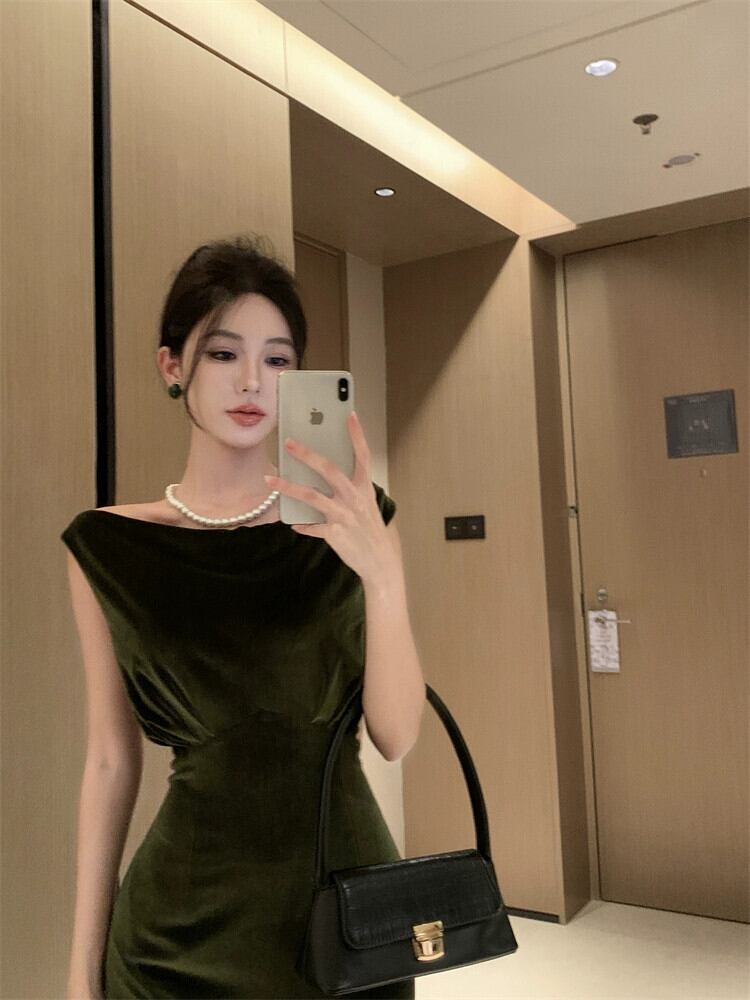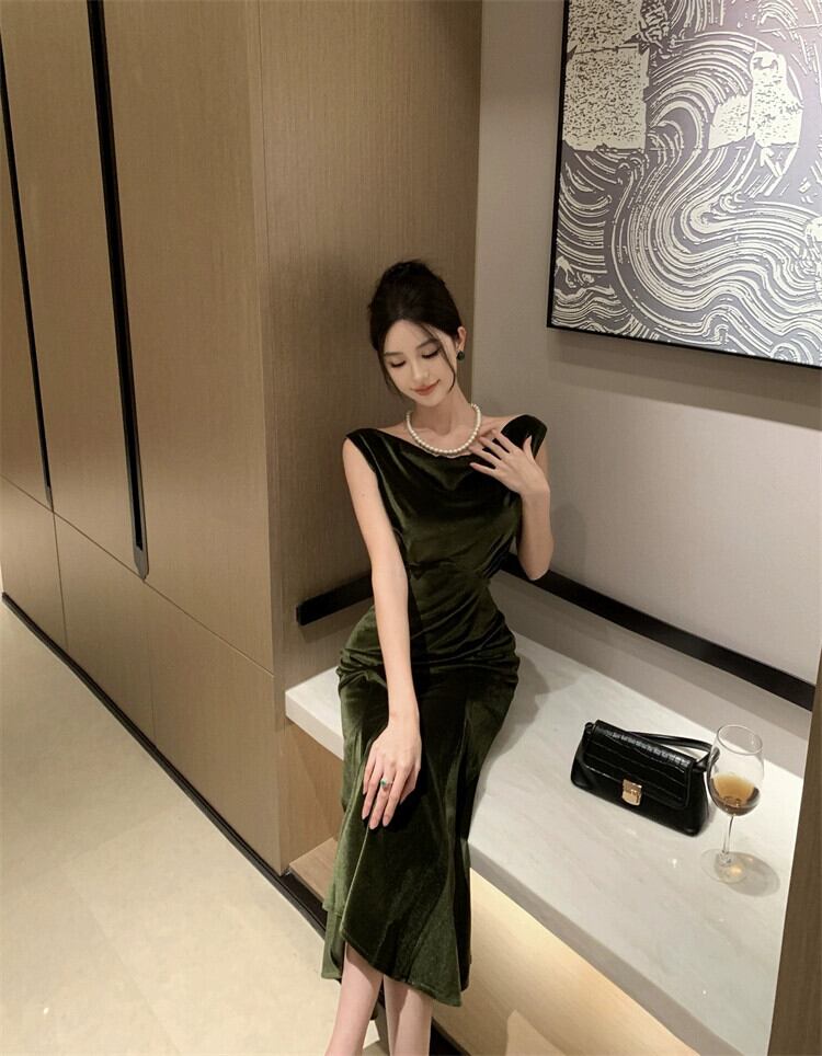 秋冬フレンチロングスカート、ハイエンド、フェミニン、ステップバイステップロータスフィッシュテールスカート、ベルベットの新しい高級ドレス オータム 秋物 ウィンター 冬物 yingd88736925630