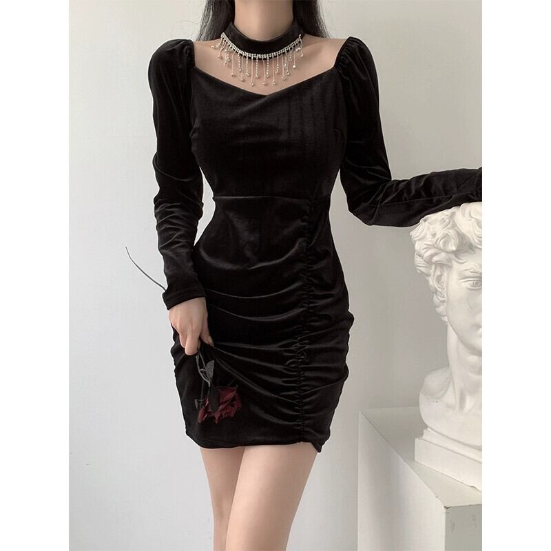 シックで美しい小さなスカート、ハイエンド、超かわいくてエレガント、中空ホルターネックベルベットインナードレスレディース、秋と冬 オータム 秋物 ウィンター 冬物 yingd72695433618