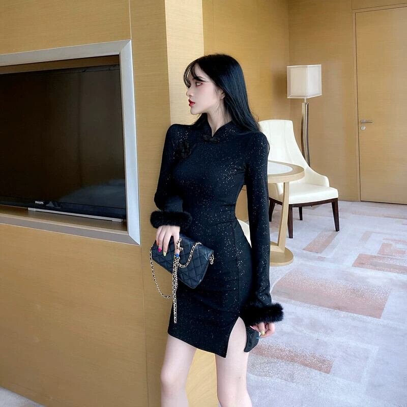 見事な小さなスカート、ハイエンドのタイトフィットのお尻、改良されたチャイナドレスのインナードレス、2024年の新しい女性の秋冬のハイエンド オータム 秋物 ウィンター 冬物 yingd41935178466
