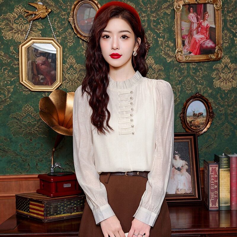 中国風の女性の中国風ボタンダウンシャツ女性 2024 春の新スタイルの気質長袖シフォンシャツトップ小さなシャツ ロング スプリング 春物 yingd8516795764