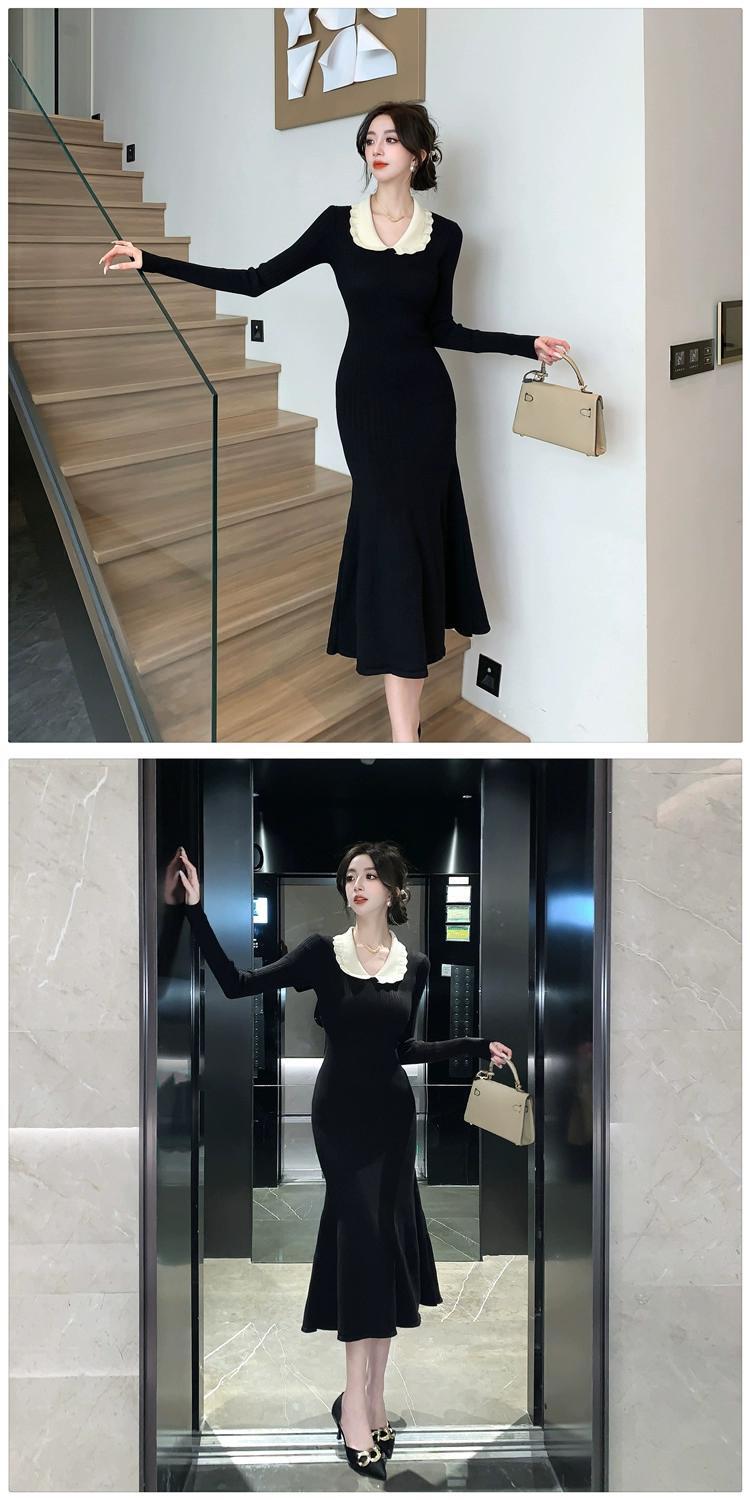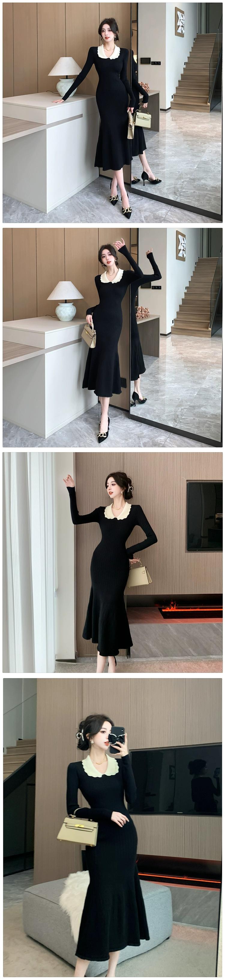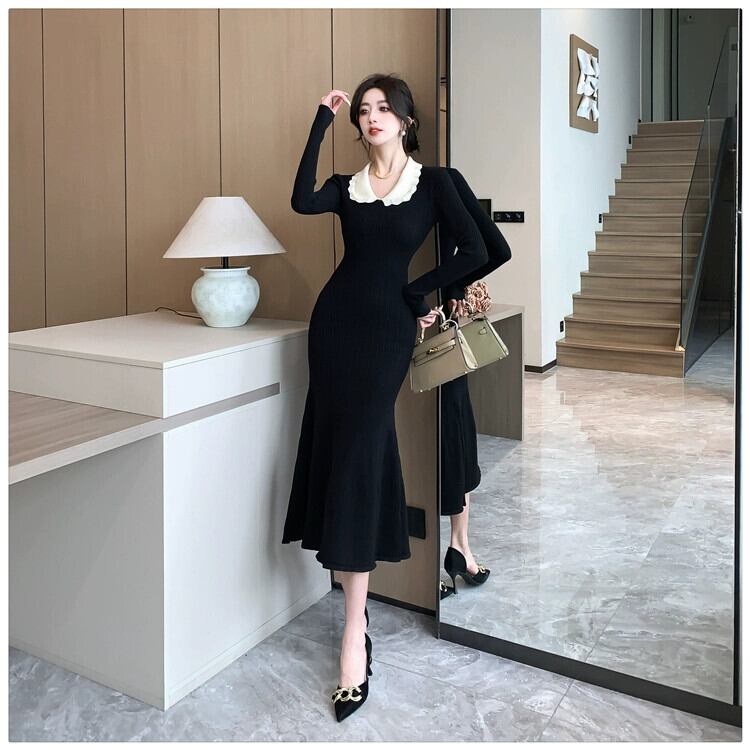 -コールド ロイヤル シスター Fengbubu 生ロータス フィッシュテール スカート ロング セーター スリム フィット ヒップ カバー ニット ドレス レディース 秋と冬 レッド オータム 秋物 ウィンター 冬物 yingd36408185436
