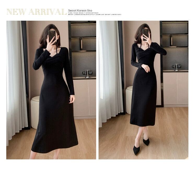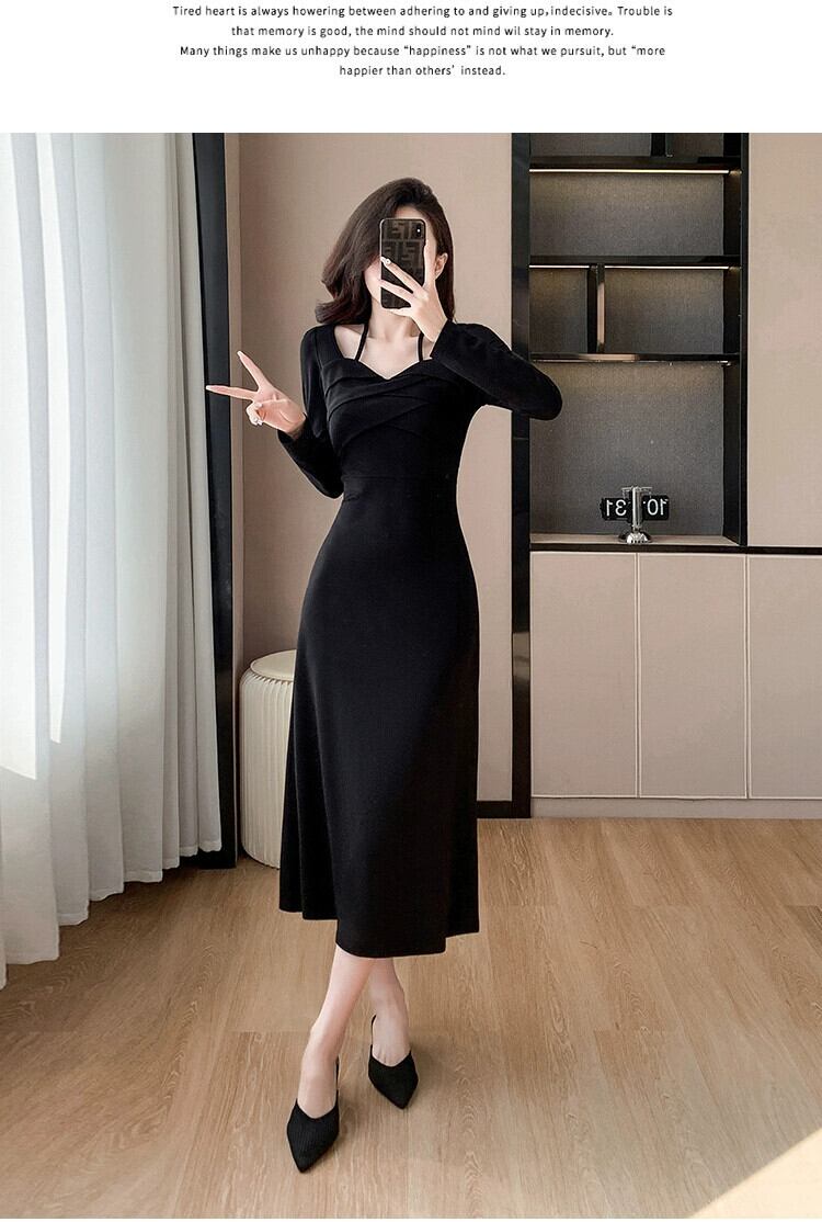 春服の女性 2024 新しいスタイルのウエスト痩身と美しい気質ホルターネックハイエンド絶妙な黒底ドレス女性 ブラック スプリング 春物 yingd79173814931
