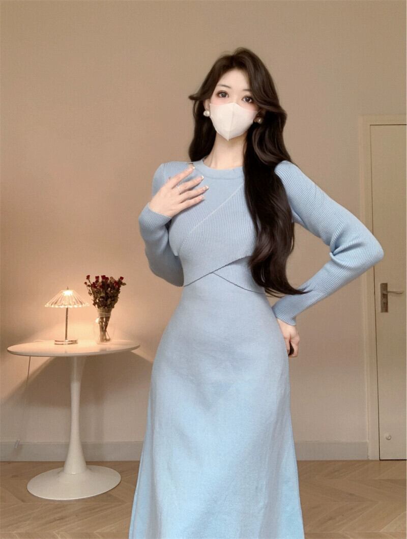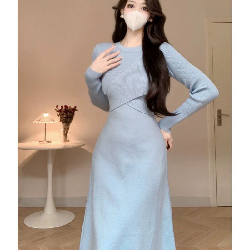 フランスの高級、超見栄えの良い秋と冬のニットドレスの女性、スリムなウエストと気質、長い膝上のセータードレスの女性 ロング オータム 秋物 ウィンター 冬物 yingd34803421207