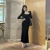 ヘップバーンスタイルのステップバイステップロータススカートフィッシュテールヒップハグボトミングスカートハイエンドで超見栄えの良い冬のインナードレス女性 ウィンター 冬物 yingd23142546523