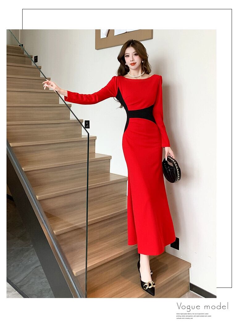 ドレスハイエンドライトラグジュアリーニッチデザインハイエンドコントラストカラースリムフィットヒップハグフィッシュテールロングスカートドレス秋と冬の女性 オータム 秋物 ウィンター 冬物 yingd38504623169