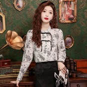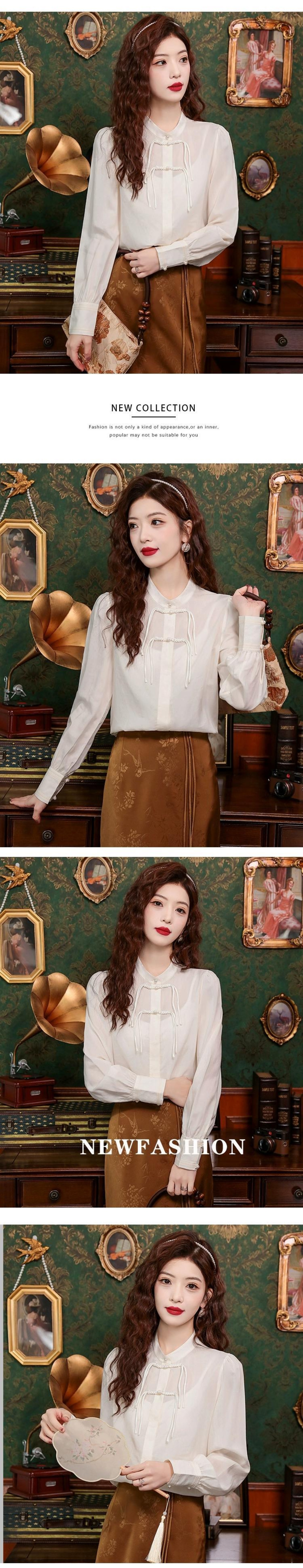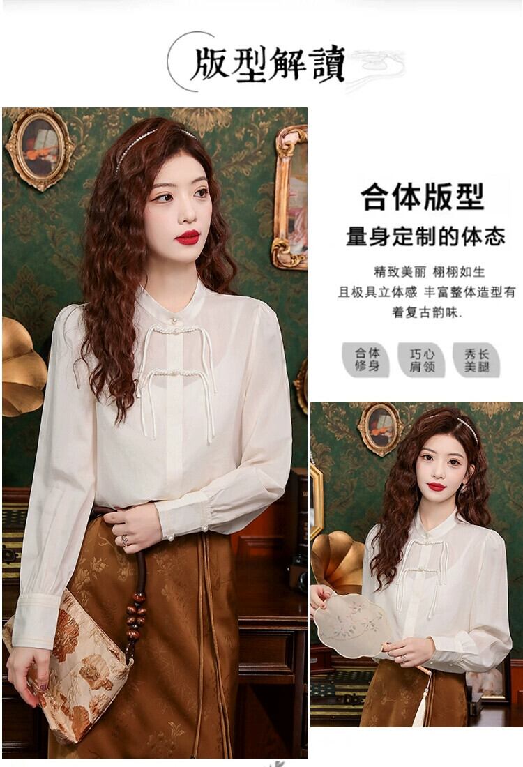 2024 中国風のディスクボタンスタンドカラー国家スタイルシャツレトロプリント馬の顔スカートトップニッチ西洋スタイルシャツ yingd66836103961