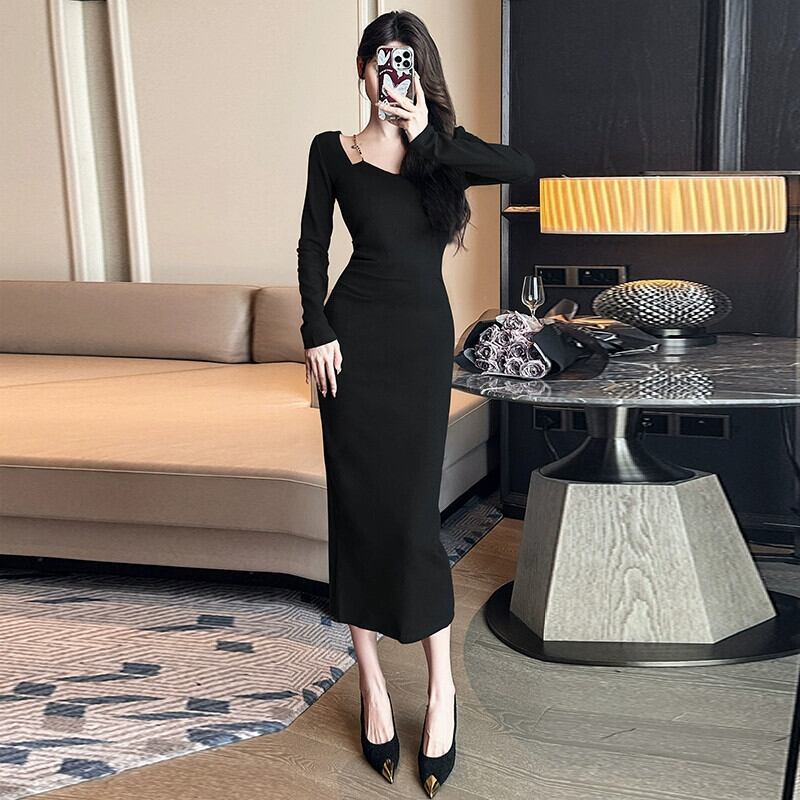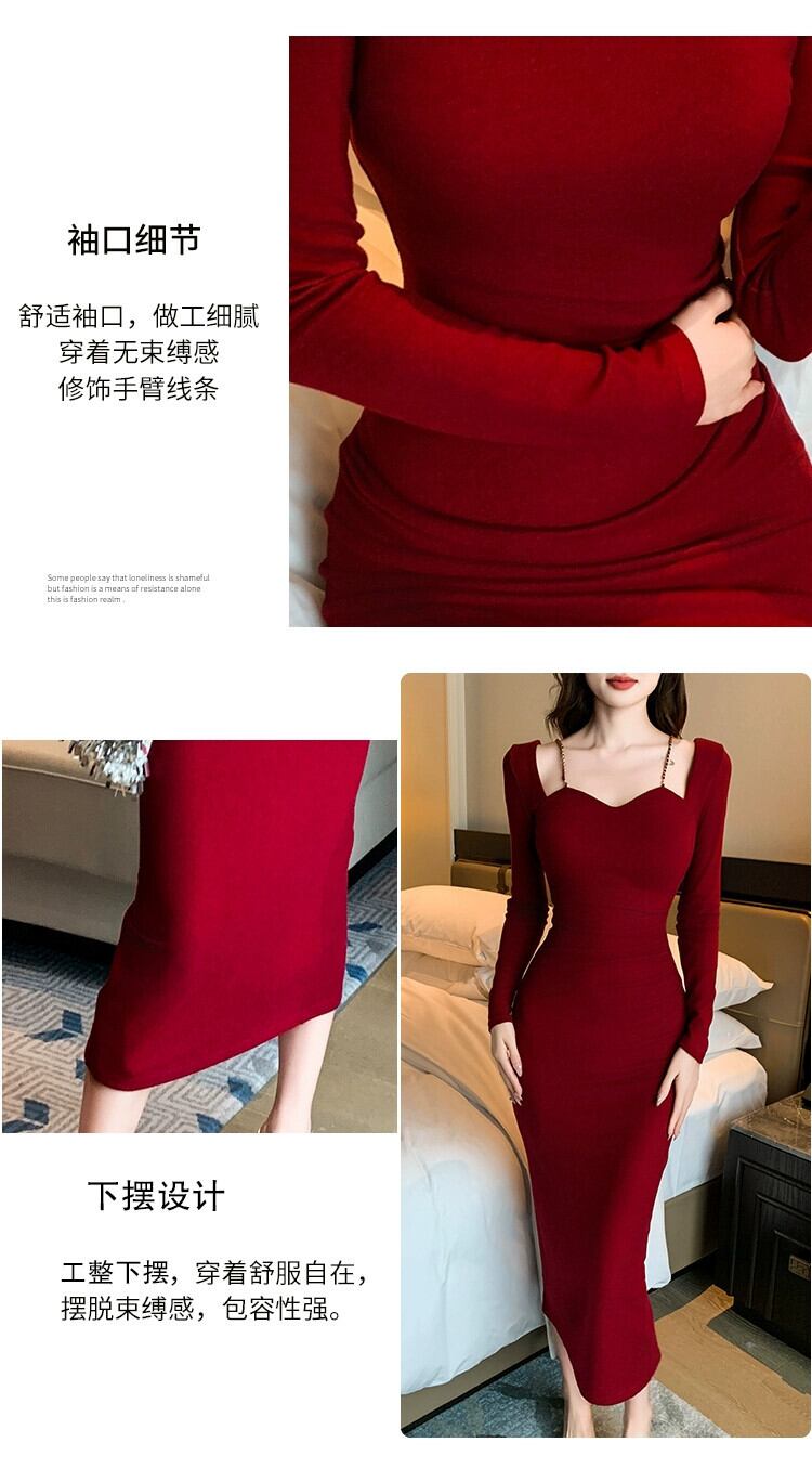赤いクリスマスウェア年のシャツ長袖スクエアカラーチェーンインナードレス2024新しい女性の秋と冬のハイエンド ロング レッド オータム 秋物 ウィンター 冬物 スクウェア yingd39240375975