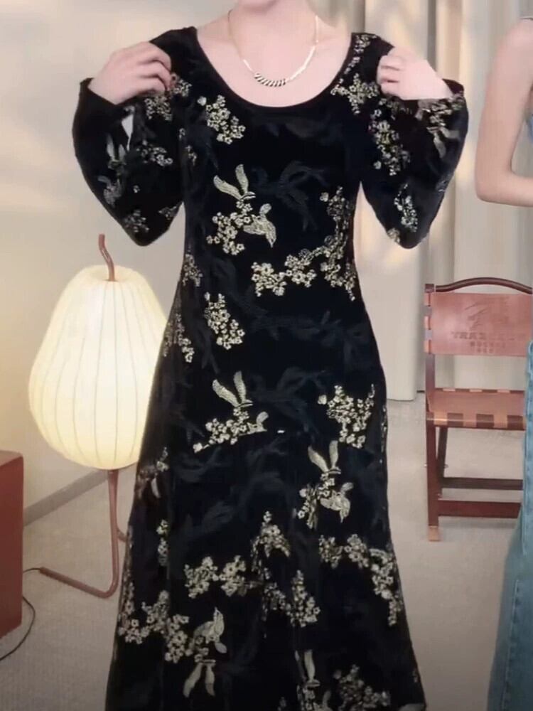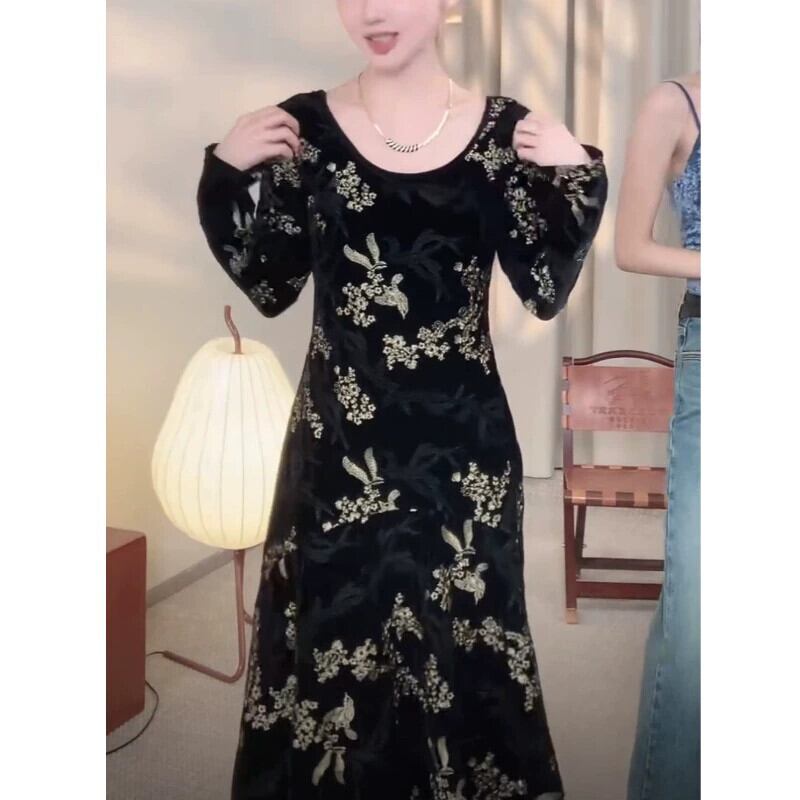 2024 新しいドレスの女性の秋と冬のハイエンドジャカードベルベットフィッシュテールスカート新しい中国風のユニークなスカート オータム 秋物 ウィンター 冬物 yingd97435595376