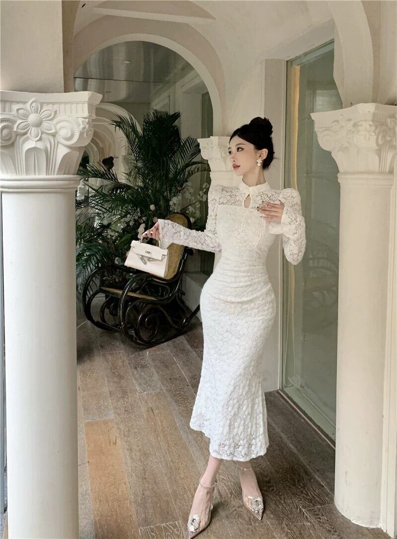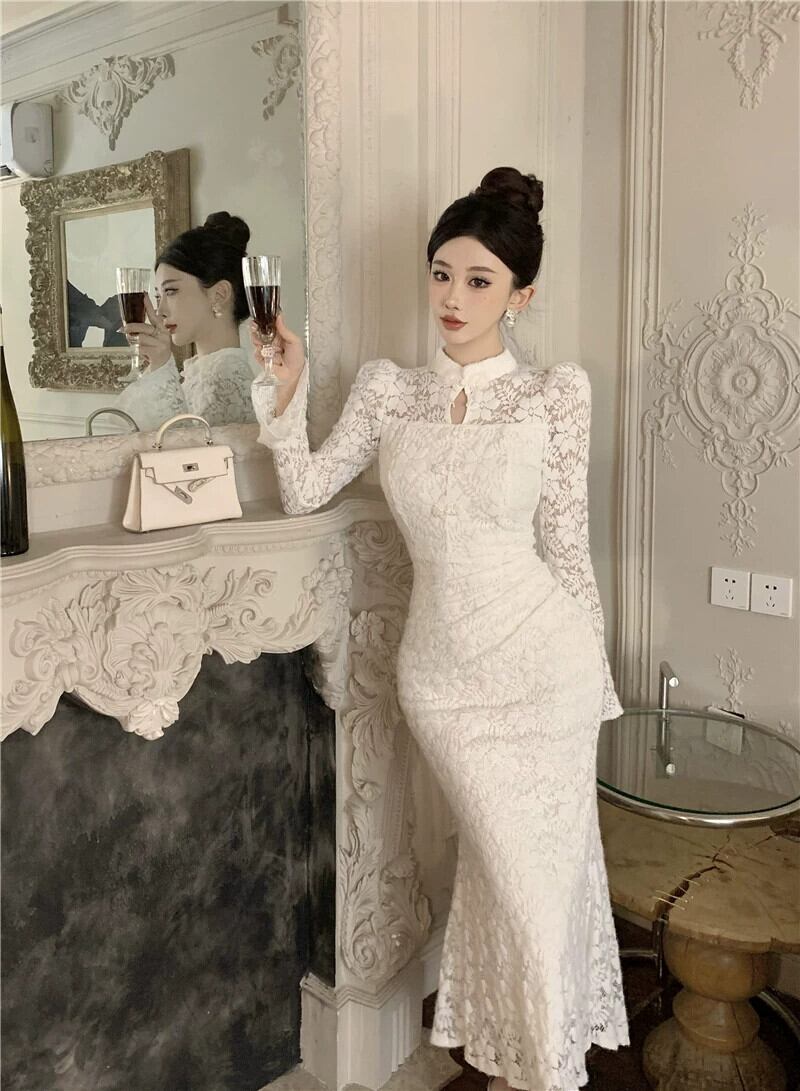 Bubu Shenglian フィッシュテールスカート 秋と冬のウエスト痩身と気質社交家 - レース冬インナードレス女性 オータム 秋物 ウィンター 冬物 yingd42905119874