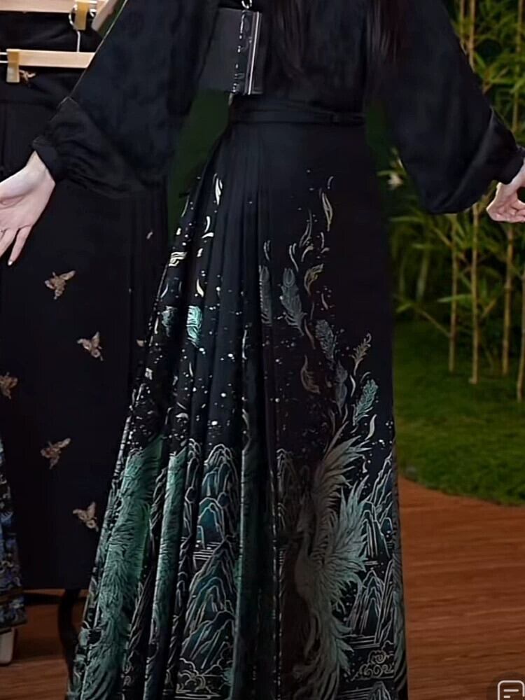 中国風の女性の中国風のレトロ明朝韓服スカート 2024 新しい改良された化粧花織りゴールド馬の顔スカート フラワーデザイン yingd81764680124