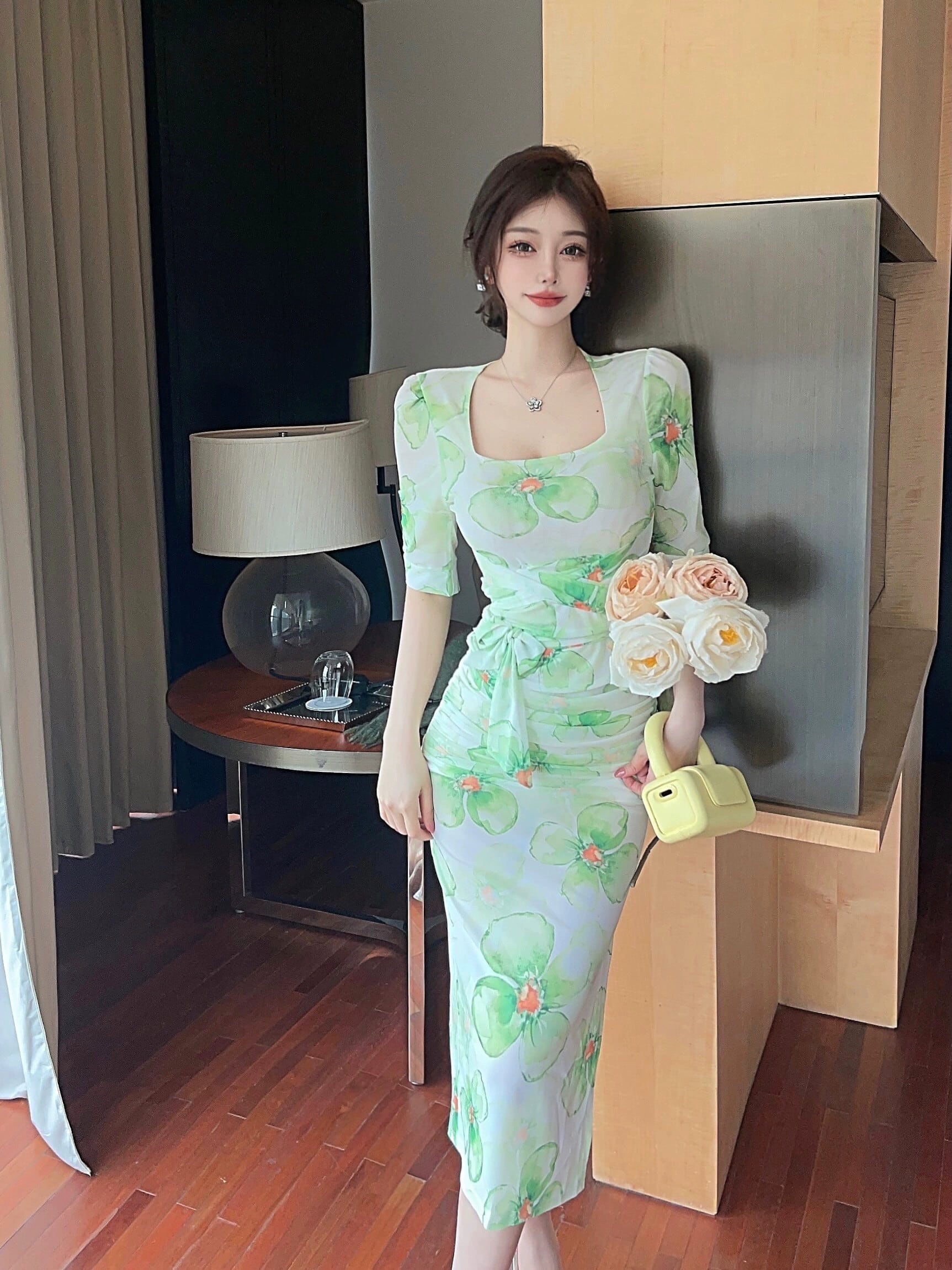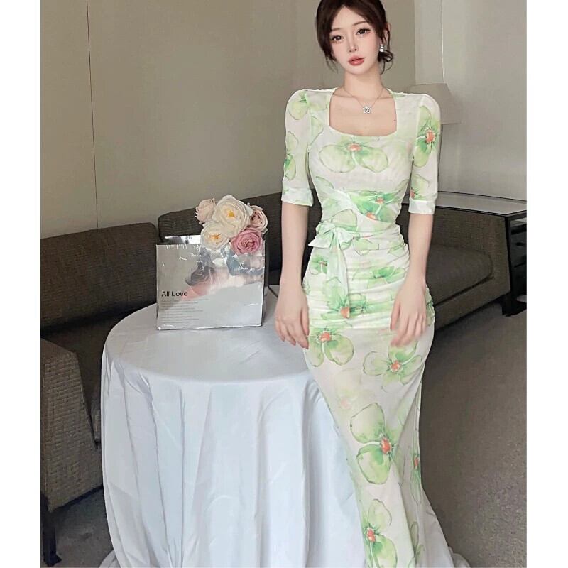 2024 春と夏の新しいスタイルのウエスト痩身セクシーなプリントタイトなヒップハグ高冷姉妹スタイルのドレスの女性 スプリング 春物 サマー 夏物 yingd10626999189