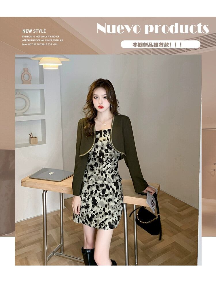 秋服 2021 新しいフランスの純粋な欲望スタイル花柄サスペンダースカート + スーツ小さなコートドレス 2 点セット女性 オータム 秋物 ピュア yingd67556299153