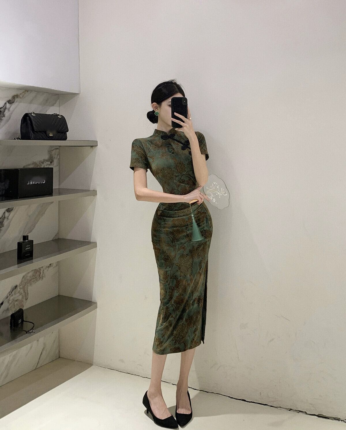中国風のシックなユニークなスカートウエスト痩身気質社交界ハイエンド改良されたチャイナドレス女性の夏 サマー 夏物 yingd15960452780