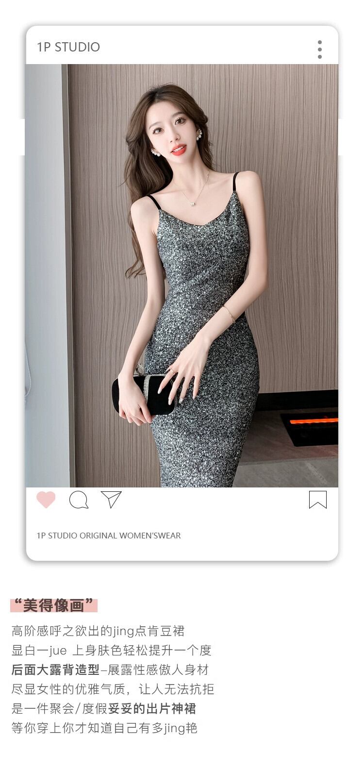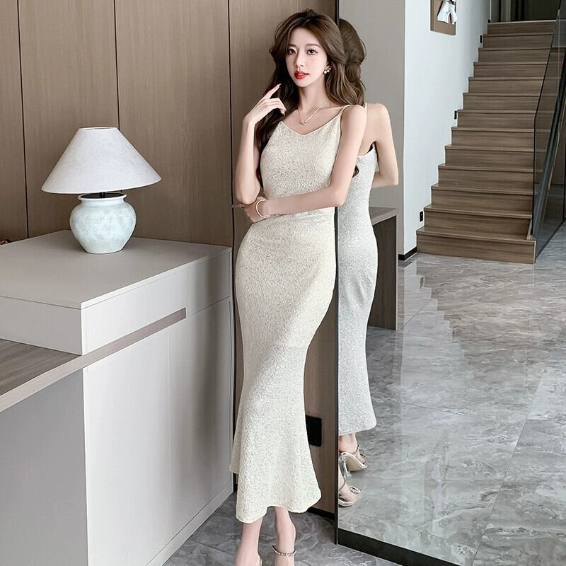 - エンドライト高級スパンコール付きお尻カバーフィッシュテールサスペンダーロングスカート少しぽっちゃりして魅力的なスカート超体型見せドレス女性 yingd43356825393