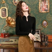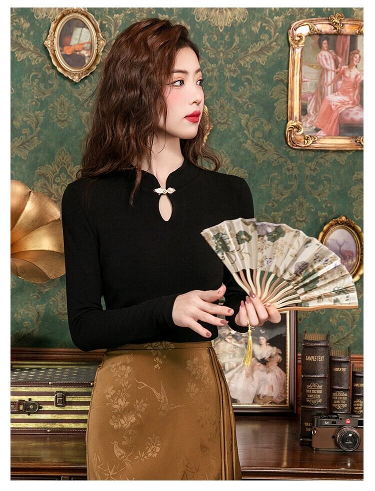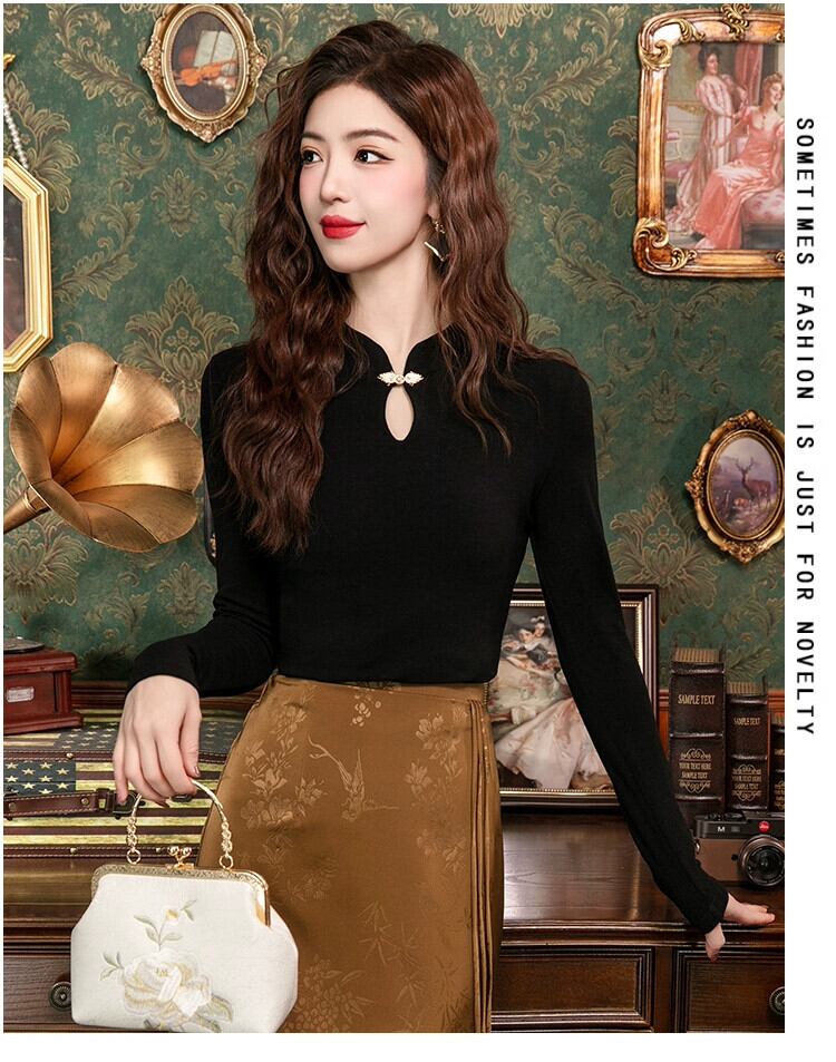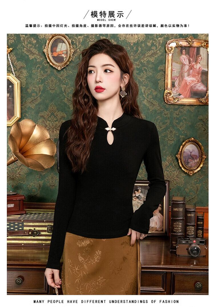 黒のインナー底シャツ女性 2024 春の新作中国風のレトロな国民風のバックルユニークなトップはとても素敵です ブラック スプリング 春物 yingd5916599961