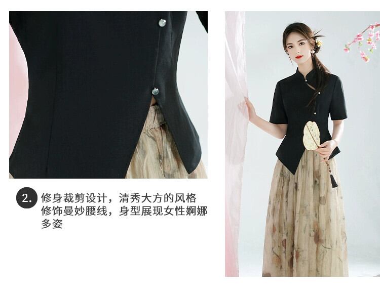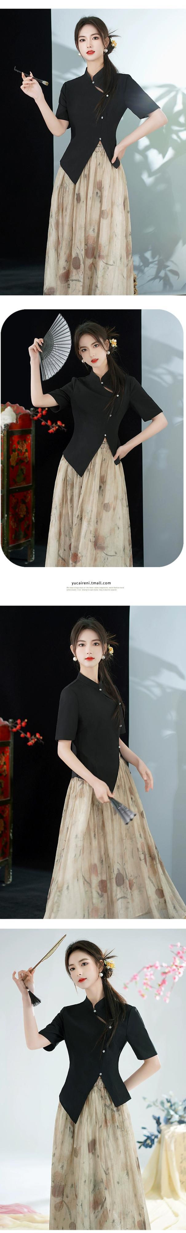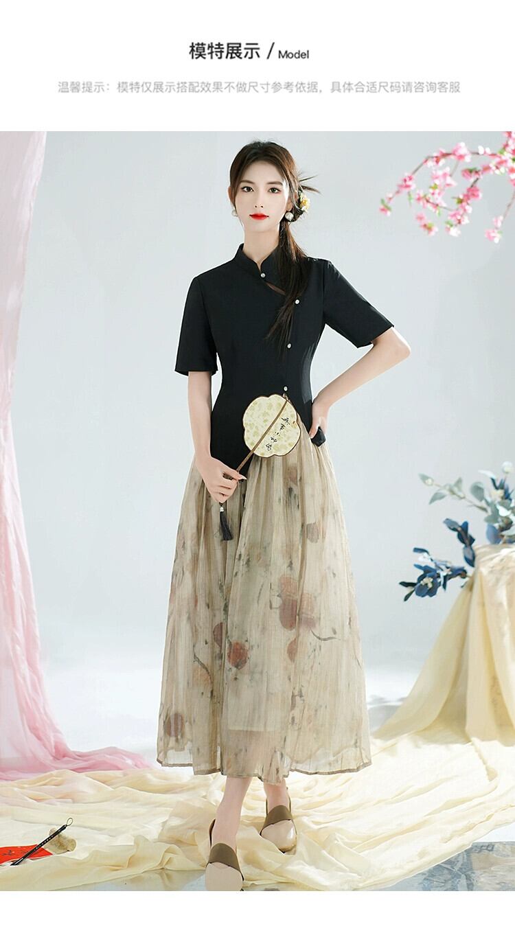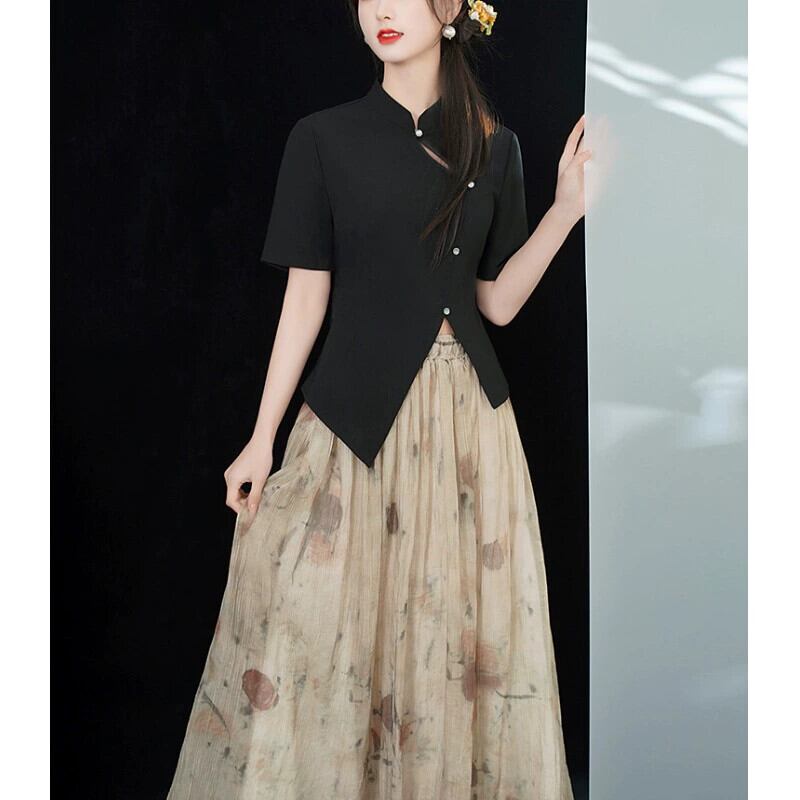 中国風スーツ、禅ウエスト痩身、レトロライト国民風トップス、シャツ、水墨画スカート、ツーピーススーツ yingd63765875629