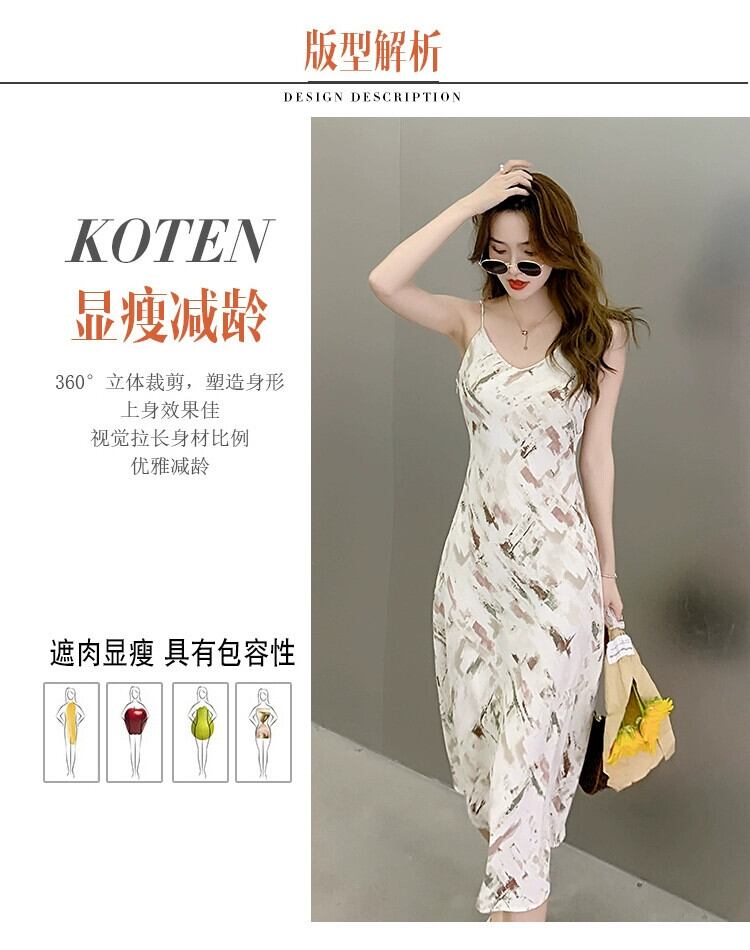 フレンチレトロロイヤルレディライト成熟したスタイルのサスペンダーロングドレススリムでスリムな気質セクシーなプリントサスペンダードレス女性の夏 サマー 夏物 yingd1606665839