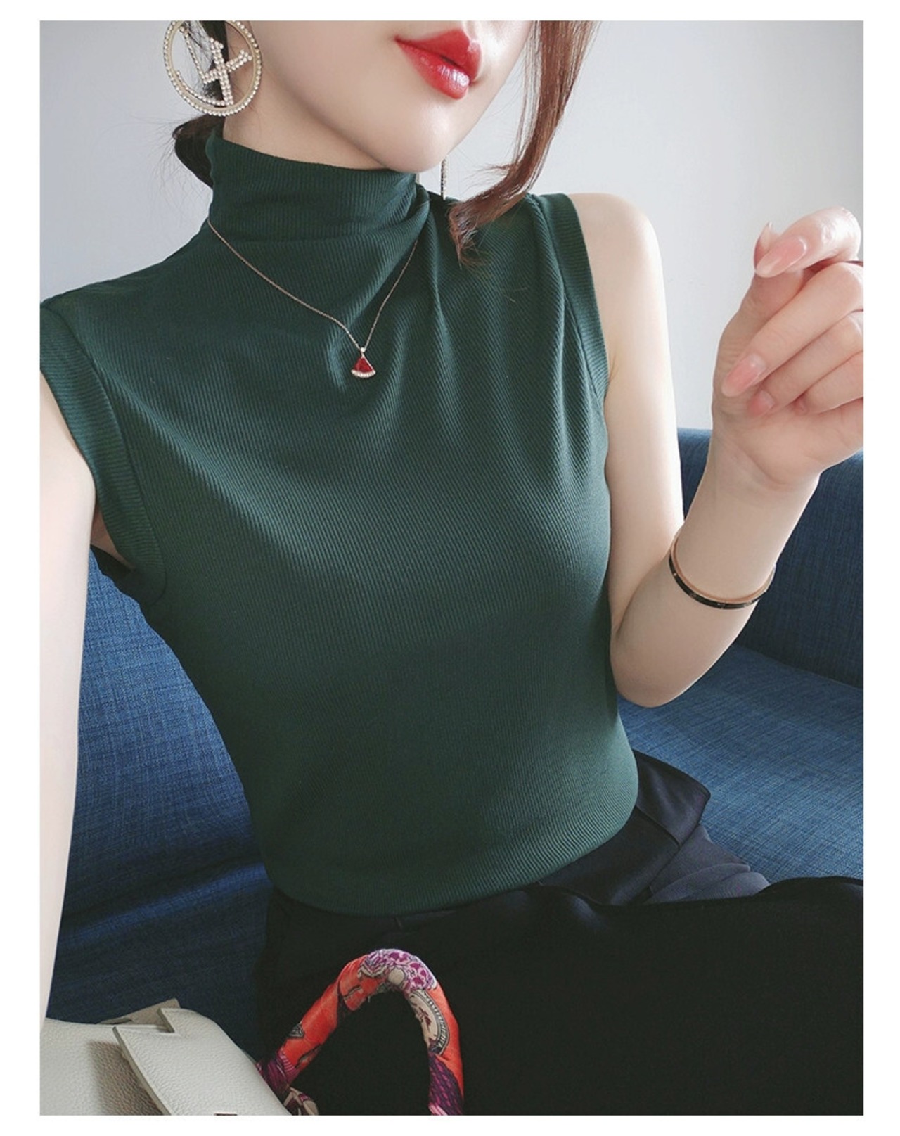 襟ベスト付き底シャツ女性 2024 新しい夏の痩身とスリムな気質ノースリーブトップ tシャツ女性 サマー 夏物 yingd30355280622