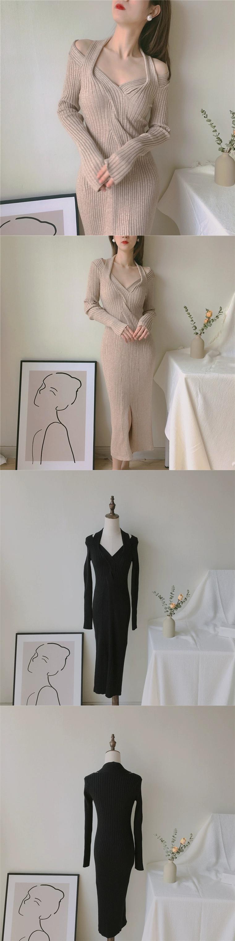 フェミニンでセクシーなヒップハグセータードレスとシックなデザインのスリットホルターネックニットドレスレディース秋冬 オータム 秋物 ウィンター 冬物 yingd42865624025