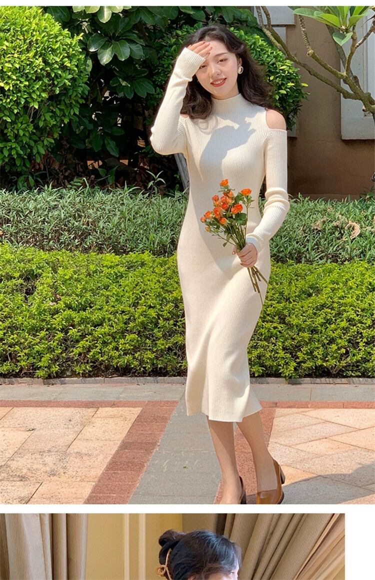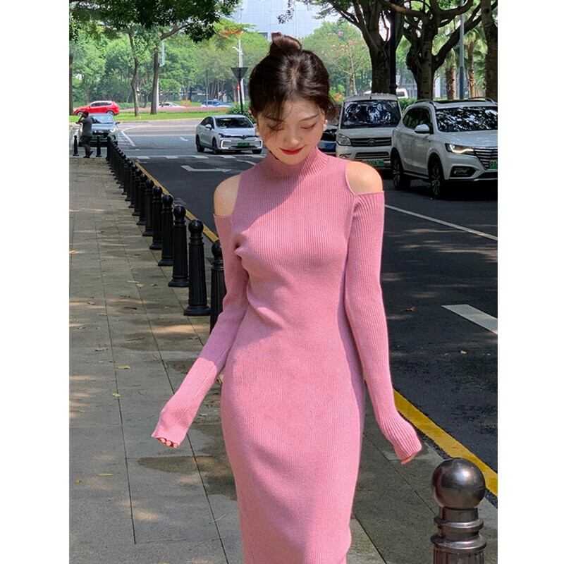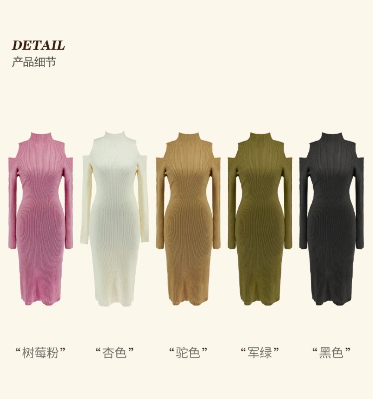 見事なスカート、高級感、スリムフィット、女神スタイル、秋冬のセクシーなオフショルダーニットドレスの女性 オータム 秋物 ウィンター 冬物 スカート yingd65859890477