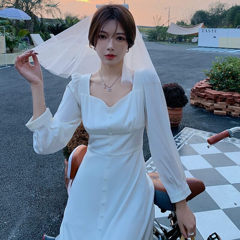 2024春の新しいスタイルの女性ネットセレブ人気の高級スカート優しいスタイルの女神風の白いドレス ホワイト スプリング 春物 yingd34363794208