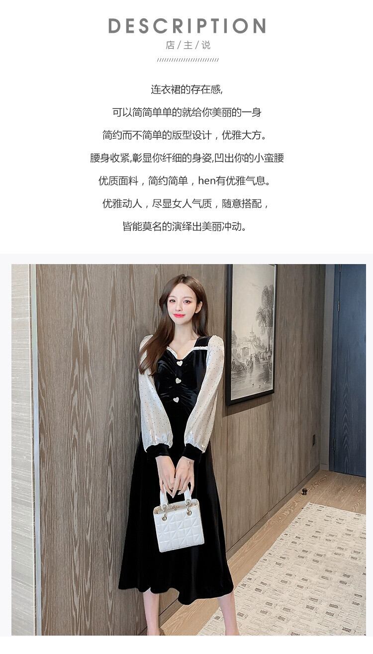 秋冬スカート、高級ロングスカート、フレンチレトロヘボン風長袖スプライス水玉ベルベットドレス、冬スタイル オータム 秋物 ウィンター 冬物 yingd10504654084