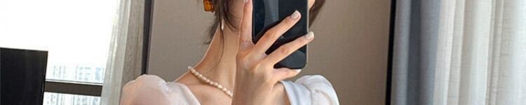 フランスの社交界の人気者 Yujie の軽くて洗練されたスクエアネックドレスレディース春ウエスト痩身メッシュスプライシングミドル丈スカート スプリング 春物 スクウェア yingd18798469729