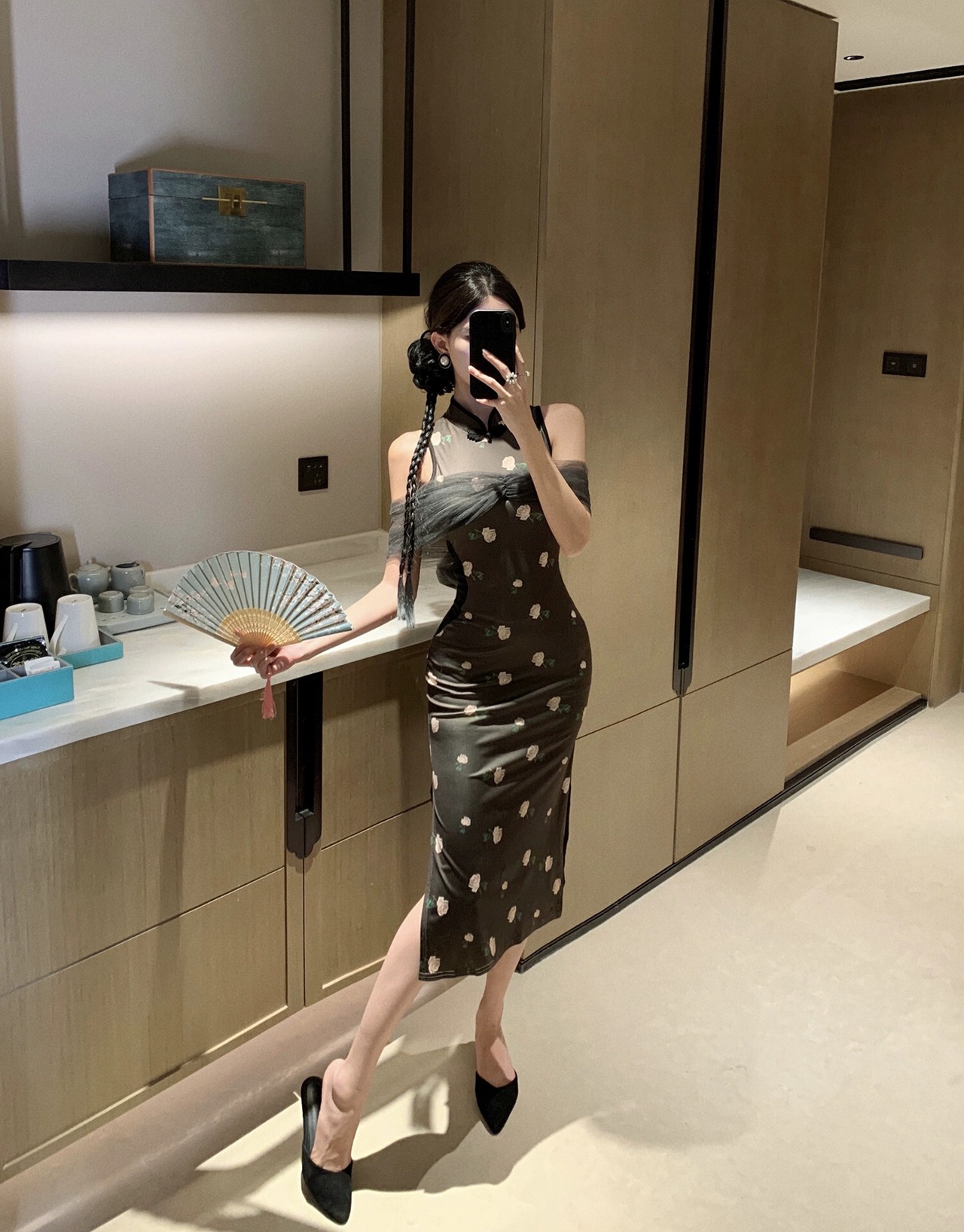 さまざまなスカート夏の女性 2024 新しいメッシュステッチ新しい中国風の改良されたチャイナドレス女性 サマー 夏物 yingd95259138605