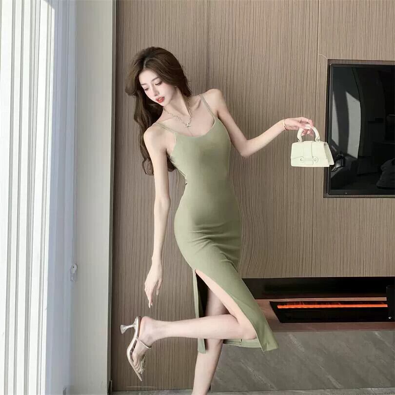 夏の女性のあらゆる種類の魅力的なスカート、純粋な欲望、セクシーなネクタイ、背中の開いた、タイトフィット、お尻を抱きしめる、スリットサスペンダードレス、ロングスカート サマー 夏物 ピュア yingd26158753847