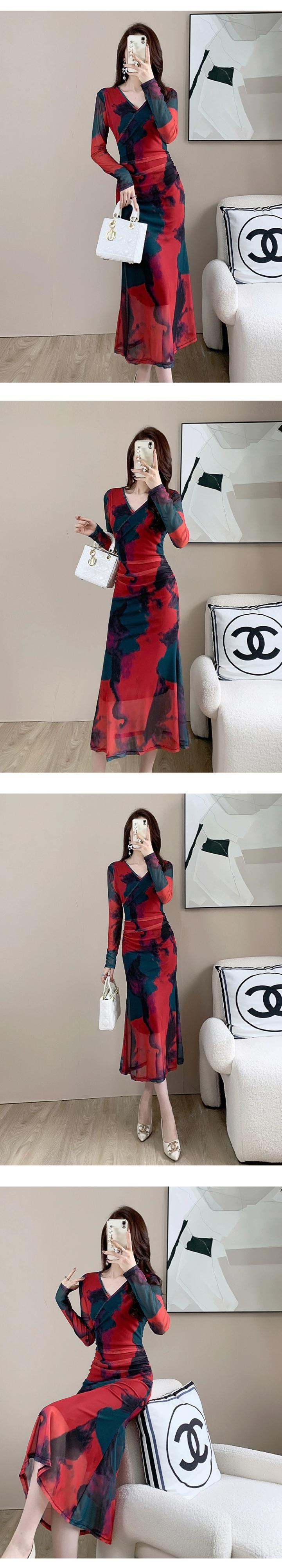 2024年の新しいスタイルの初春のスカート、さまざまなスタイル、ウエストスリム、プリーツヒップハグプリント汚れたドレスの女性 スプリング 春物 yingd36632872276